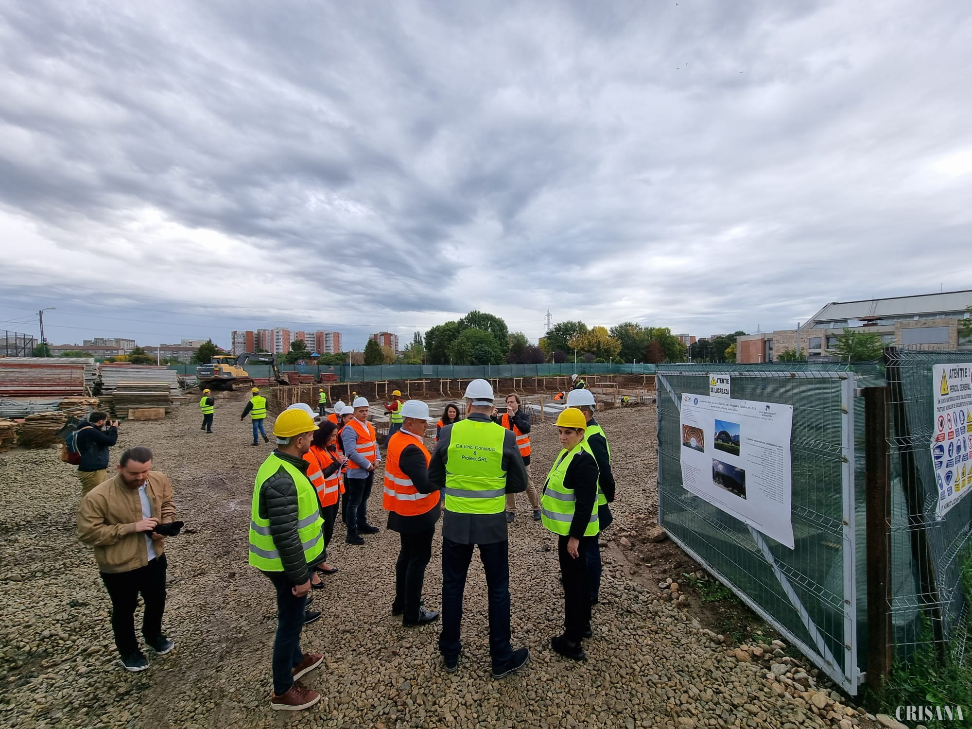 Prima vizită în teren a fost făcută la șantierul bazinului didactic de înot din cartierul Ioșia, care se construiește pe un teren de 3.000 mp, delimitat de Arena Antonio Alexe şi Liceul Don Orione.