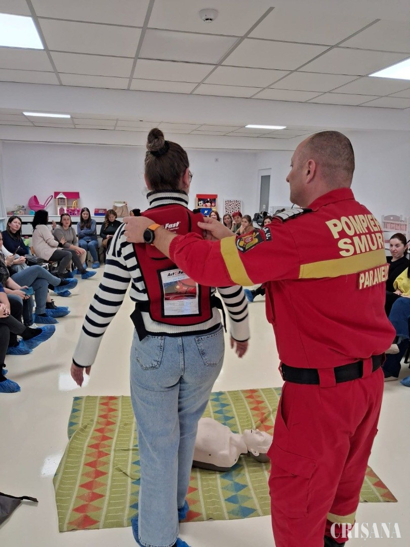 Activitatea a avut loc miercuri, 14 ianuarie a.c., în intervalul orar 18.00–20.00, fiind susținută de plutonier adjutant șef Viloaica Bogdan, pompier formator în cadrul Centrului de Formare și Pregătire în Descarcerare și Asistență Medicală de Urgență al ISU Bihor. Cu această ocazie, 35 de cadre didactice din învățământul preșcolar au beneficiat de instruire teoretică și practică în domeniul acordării primului ajutor. Pe parcursul sesiunii, participanții au fost familiarizați cu noțiuni esențiale privind dezobstrucția căilor aeriene, resuscitarea cardio-pulmonară, tipurile de hemoragii și metodele de hemostază, precum și intervenția în cazul traumatismelor. În partea practică, cadrele didactice au exersat, sub îndrumarea formatorului ISU Bihor, manevra Heimlich, poziția laterală de siguranță, tehnicile de resuscitare, precum și alte intervenții salvatoare în situații critice. Pompierii bihoreni vor continua, pe parcursul întregului an, activitățile de instruire a personalului didactic și a elevilor pe linia acordării primului ajutor, scopul acestora fiind protejarea copiilor printr-o intervenție cât mai rapidă și adecvată, în cazul producerii unor situații de urgență în unitățile de învățământ.
