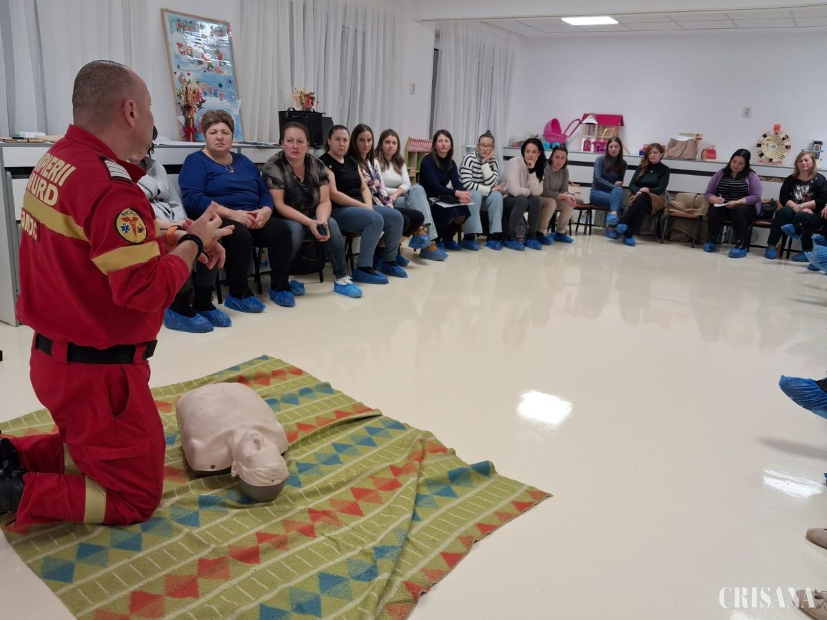 Peste 30 de cadre didactice beiușene au fost instruite în domeniul acordării primului ajutor, în cadrul unei activități desfășurate de personalul specializat al Inspectoratului pentru Situații de Urgență „Crișana” al județului Bihor (ISU Bihor), la Grădinița cu Program Prelungit Nr. 1 din Beiuș.