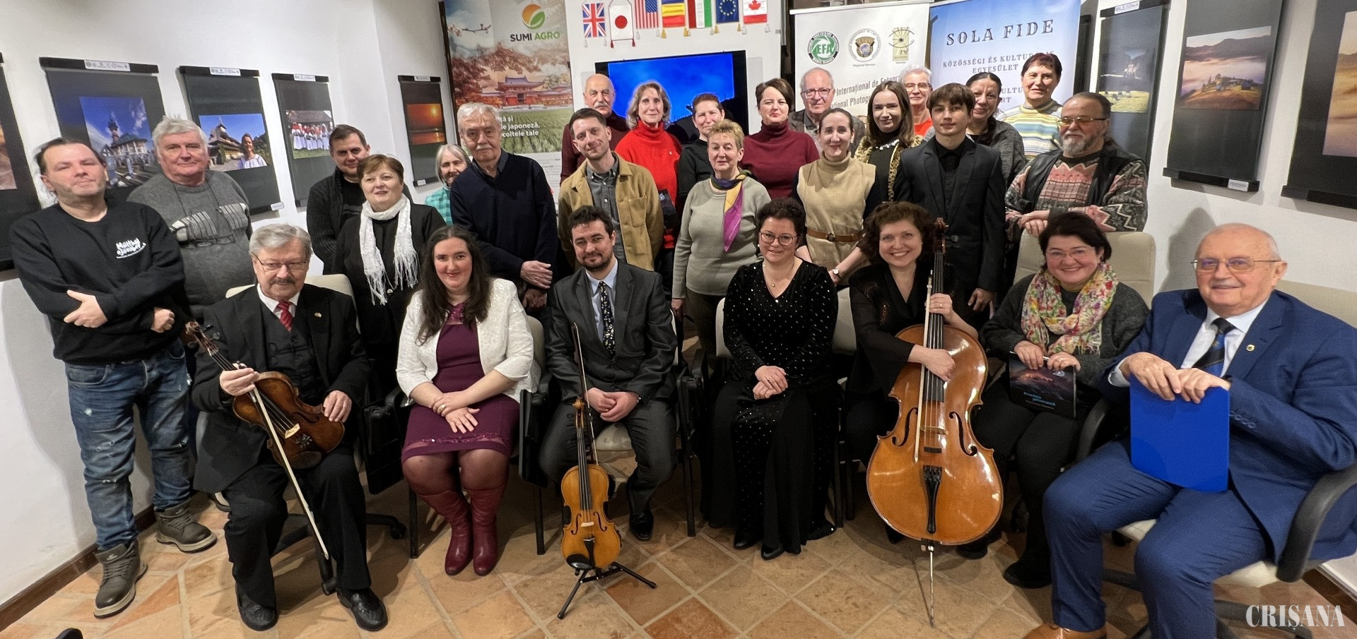 În continuare, lector univ. dr. Ramona Novicov, istoric și critic de artă, a salutat inițiativa organizării acestor evenimente, subliniind rolul esențial pe care muzica și arta fotografică îl joacă în configurarea și consolidarea culturii naționale. Vernisajul a fost urmat de un concert cameral, intitulat sugestiv „Enescu 70+1”, un omagiu adus genialului compozitor român George Enescu. Artiștii Asociației Culturale și Comunitare „Sola Fide” – Béres Csilla (soprană), Ichim Beata (violoncel), Gáll Attila (vioară), Réthi-Gáll Brigitta-Éva (pian) și Thurzó Sándor József (violă) – au oferit publicului un periplu sonor rafinat, interpretând lucrări emblematice din creația enesciană. Un moment de profundă emoție a precedat concertul: recitarea poeziei „Unui tânăr virtuoz”, de Carmen Sylva, dedicată lui George Enescu. Versurile au prins glas în limba română, prin elevul Nistor Ștefan (clasa a X-a), coordonat de profesoara Daniela Vereș), și în limba maghiară, prin Fórián Andrea, președinta Asociației „Sola Fide”, subliniind, încă o dată, puterea culturii de a uni, dincolo de granițe lingvistice.