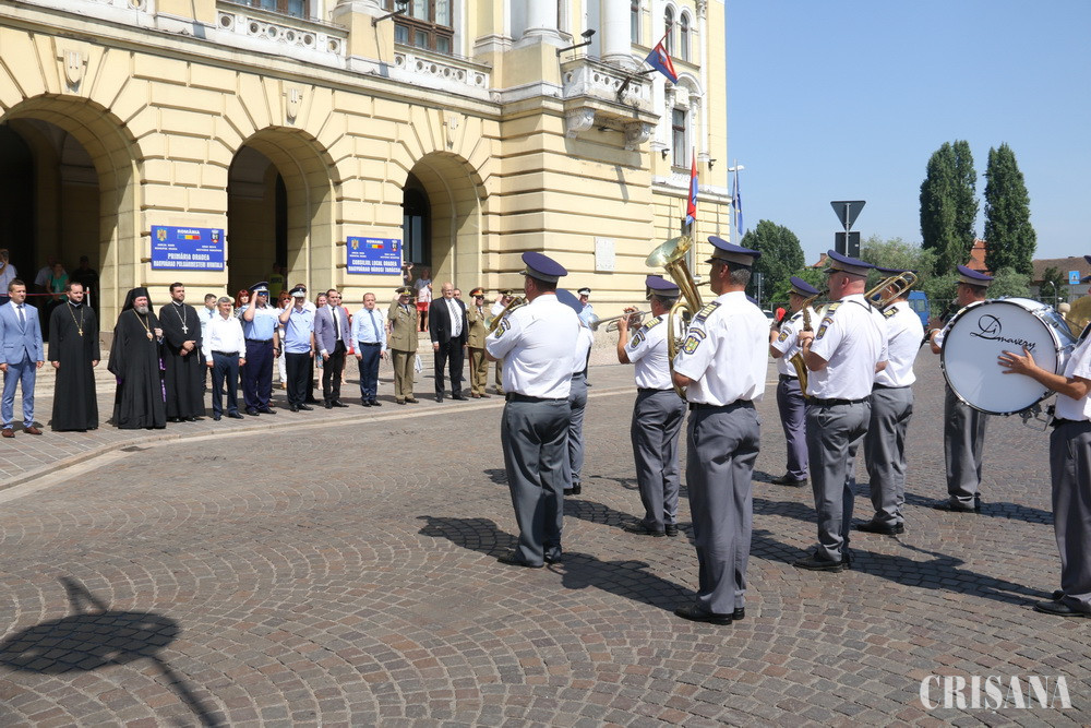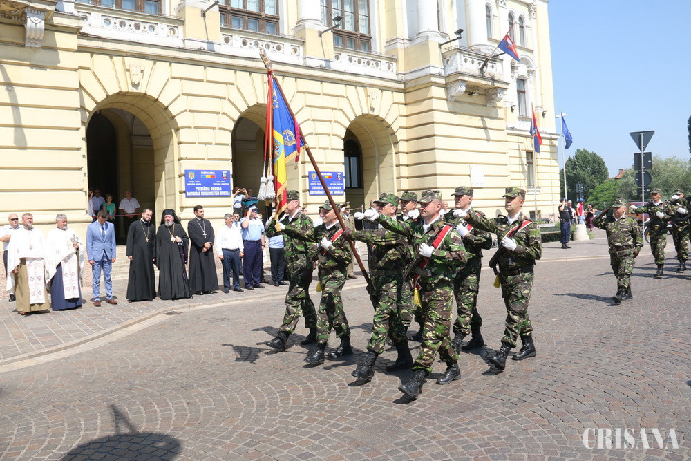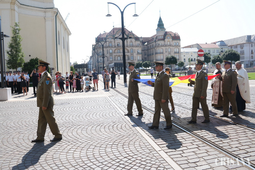Ziua Drapelului Naţional, care se sărbătoreşte în fiecare an în data de 26 iunie, a fost marcată, ieri, la Oradea, printr-o ceremonie militară desfăşurată pe platoul din faţa Primăriei Oradea. Aceasta a fost precedată de o slujbă de sfinţire a drapelului, oficiată la Biserica cu Lună.