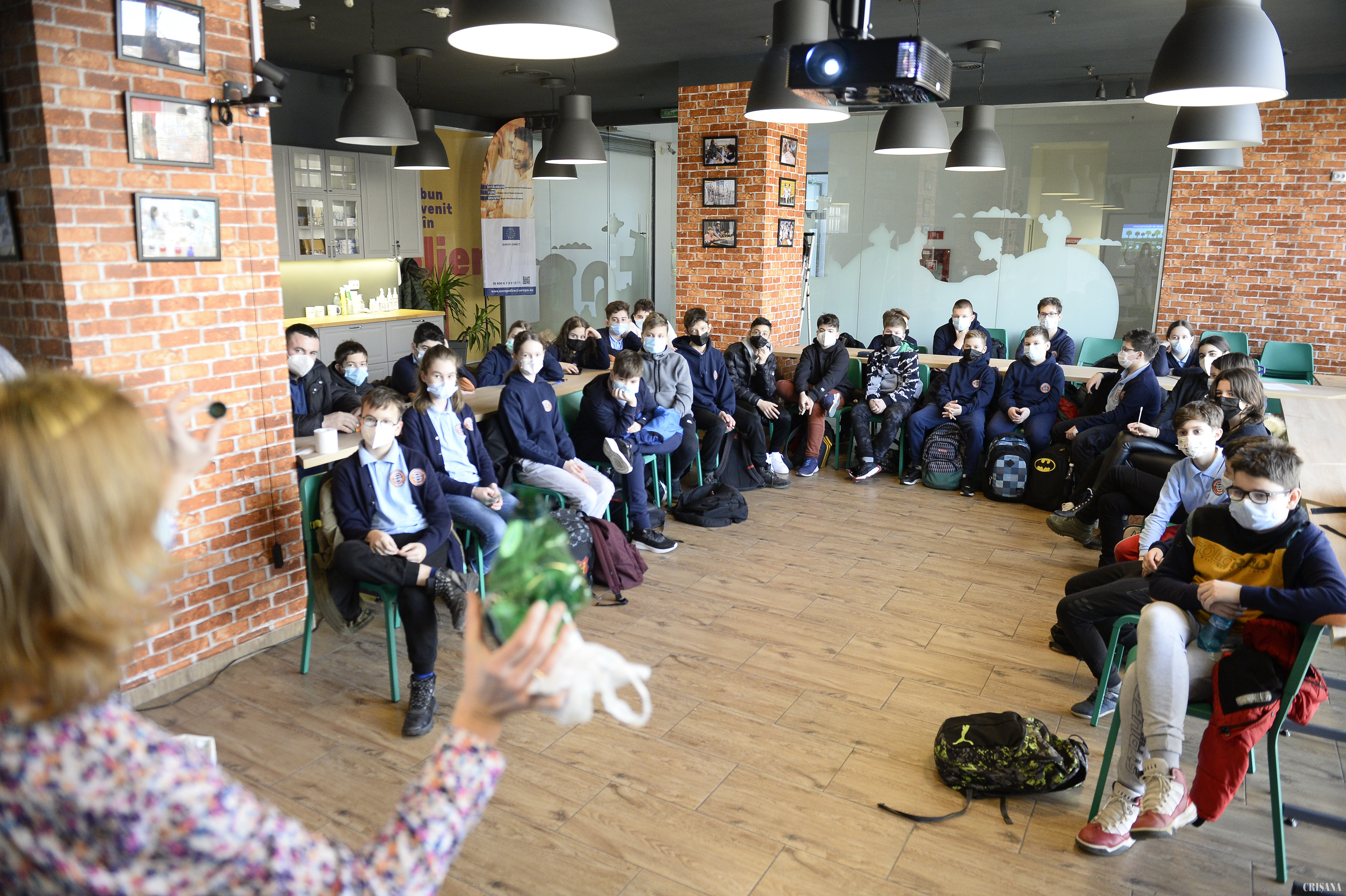 Din păcate, în România nu putem să ne lăudăm cu un grad foarte ridicat de colectare selectivă corectă a deșeurilor. În cadrul atelierului „Jocul”, membri ai Eco Bihor le-au explicat elevilor unei clase de gimnaziu de la Colegiul Național „Emanuil Gojdu” ce trebuie să facă pentru a colecta deșeurile în mod corect.