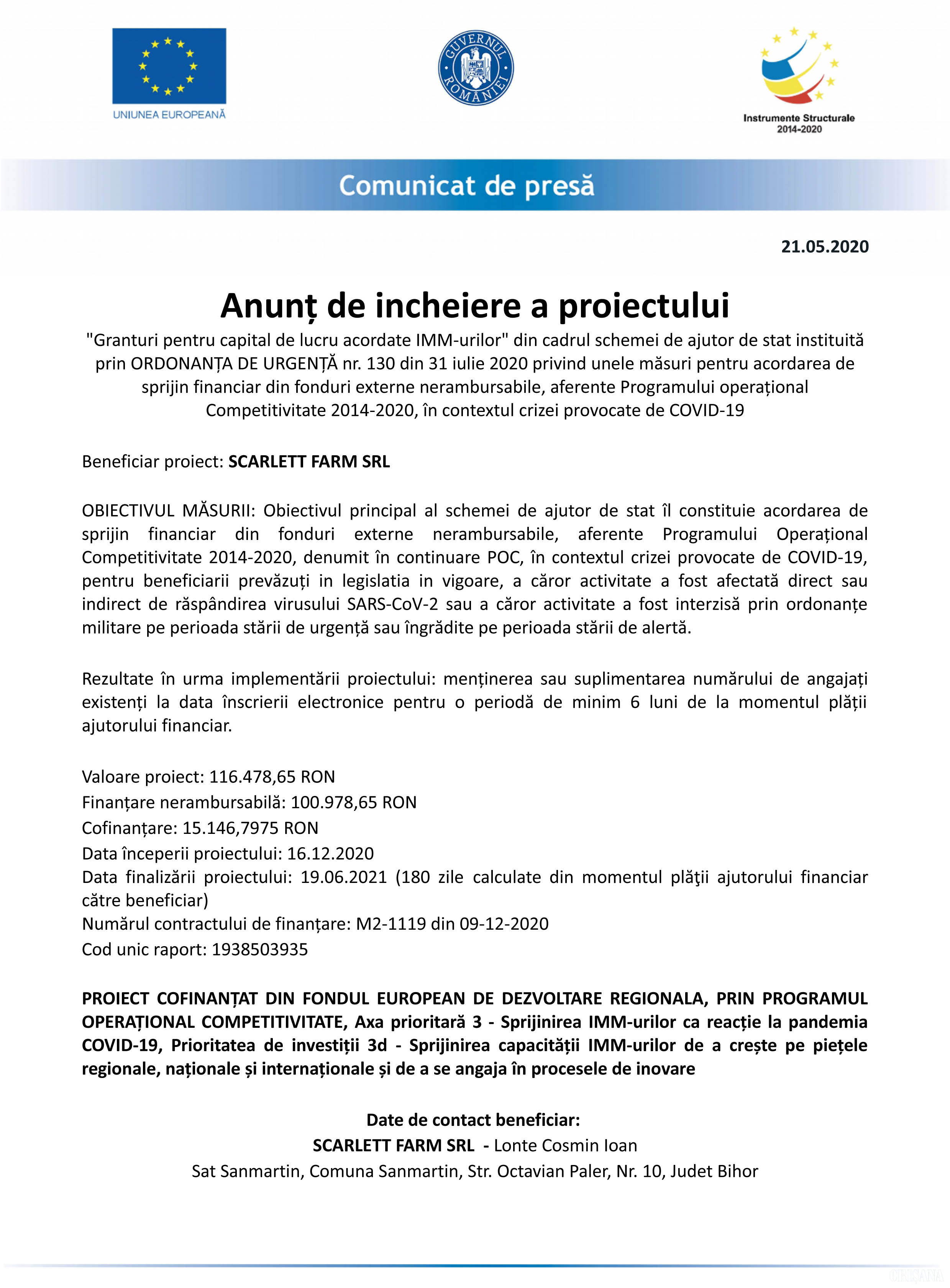 Anunț de incheiere a proiectului Advertorial 24 Mai 2021 185 1 0 Advertorial Comentarii Nu există nici un comentariu. Adaugă opinia ta Poţi adăuga un comentariu completând formularul de mai jos. Decizia de publicare a opiniilor dvs. ne aparţine în întregime. Responsabilitatea juridică pentru conţinutul comentariilor dvs. va revine în exclusivitate. Nume * Subiect * Comentariu