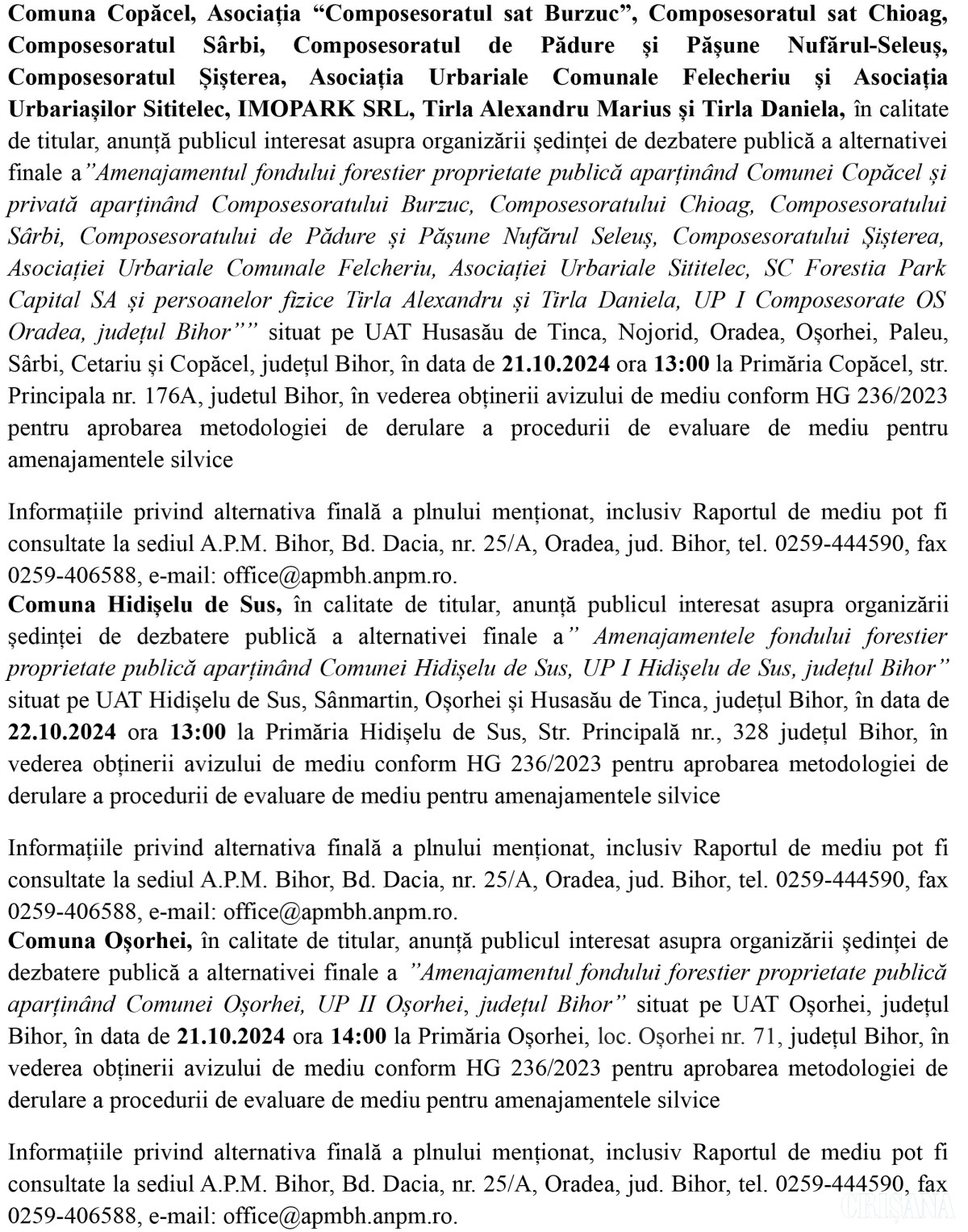 Anunţuri comunele Copăcel, Hidişelu de Sus, Oşorhei 03 Septembrie 2024 184 1 0 Advertorial Comentarii Nu există nici un comentariu. Adaugă opinia ta Poţi adăuga un comentariu completând formularul de mai jos. Decizia de publicare a opiniilor dvs. ne aparţine în întregime. Responsabilitatea juridică pentru conţinutul comentariilor dvs. va revine în exclusivitate. Nume * Subiect * Comentariu