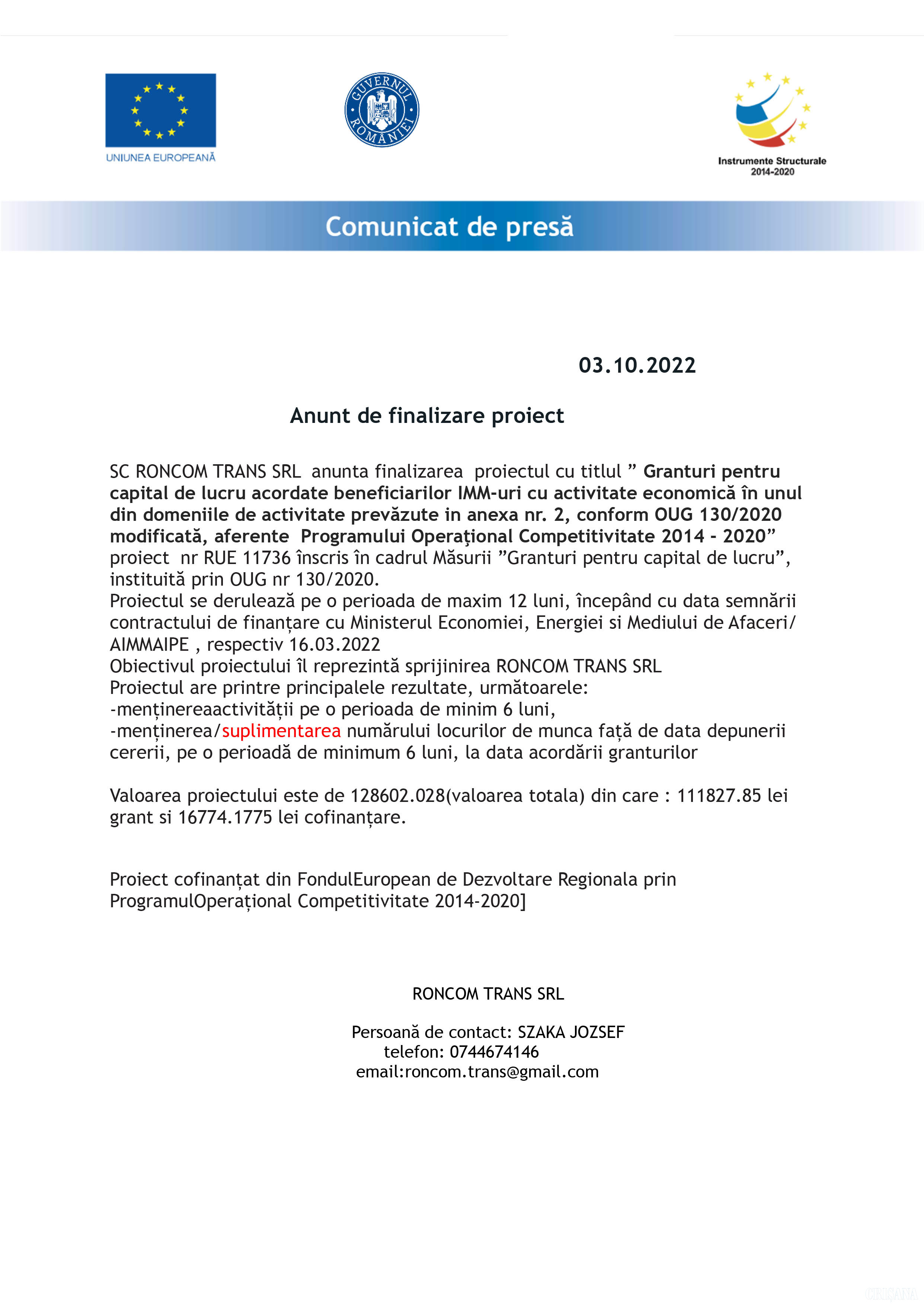 Comunicat de presă 03 Octombrie 2022 229 1 0 Advertorial Comentarii Nu există nici un comentariu. Adaugă opinia ta Poţi adăuga un comentariu completând formularul de mai jos. Decizia de publicare a opiniilor dvs. ne aparţine în întregime. Responsabilitatea juridică pentru conţinutul comentariilor dvs. va revine în exclusivitate. Nume * Subiect * Comentariu