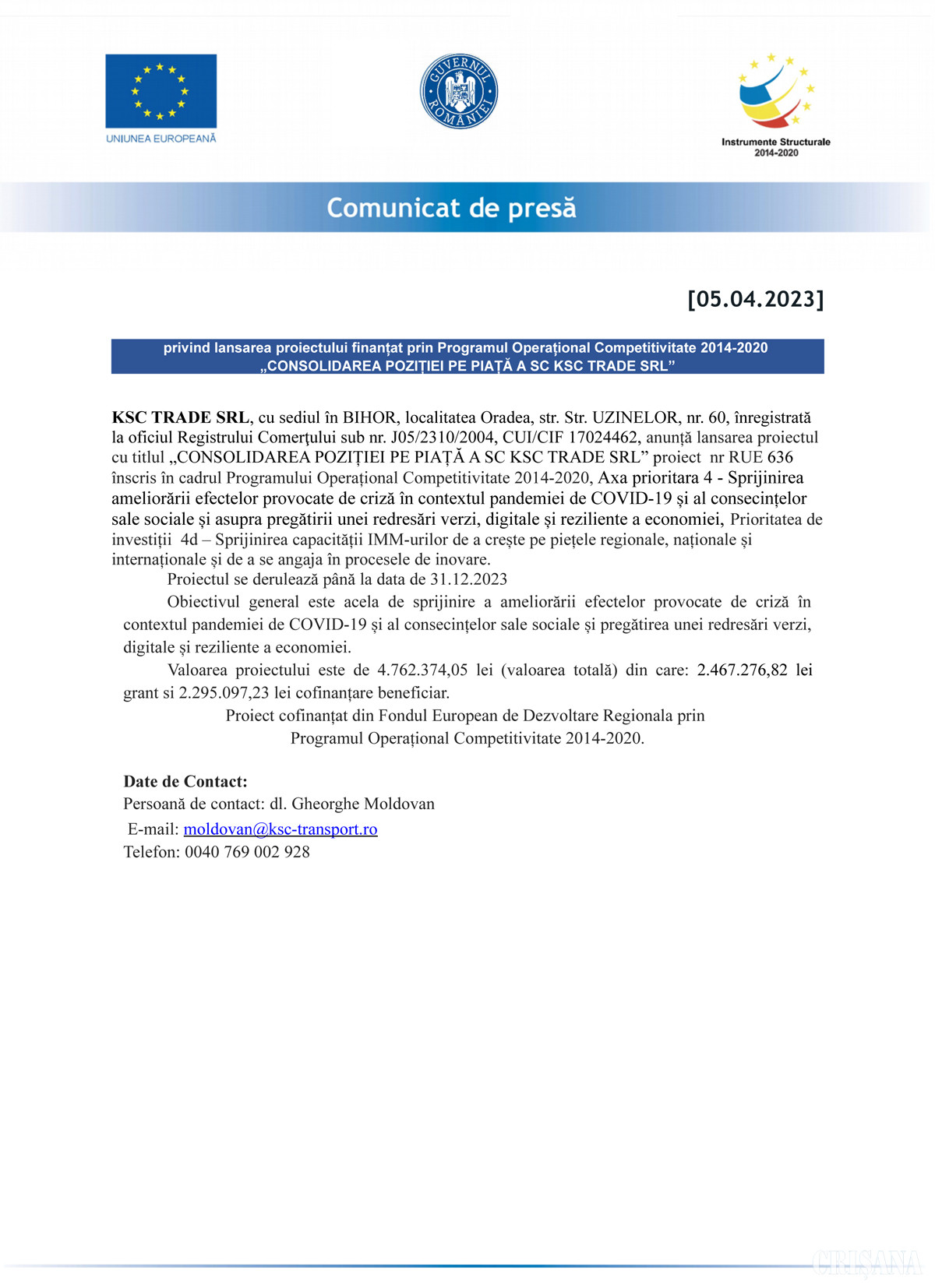 Comunicat de presă 05 Aprilie 2023 201 1 0 Advertorial Comentarii Nu există nici un comentariu. Adaugă opinia ta Poţi adăuga un comentariu completând formularul de mai jos. Decizia de publicare a opiniilor dvs. ne aparţine în întregime. Responsabilitatea juridică pentru conţinutul comentariilor dvs. va revine în exclusivitate. Nume * Subiect * Comentariu