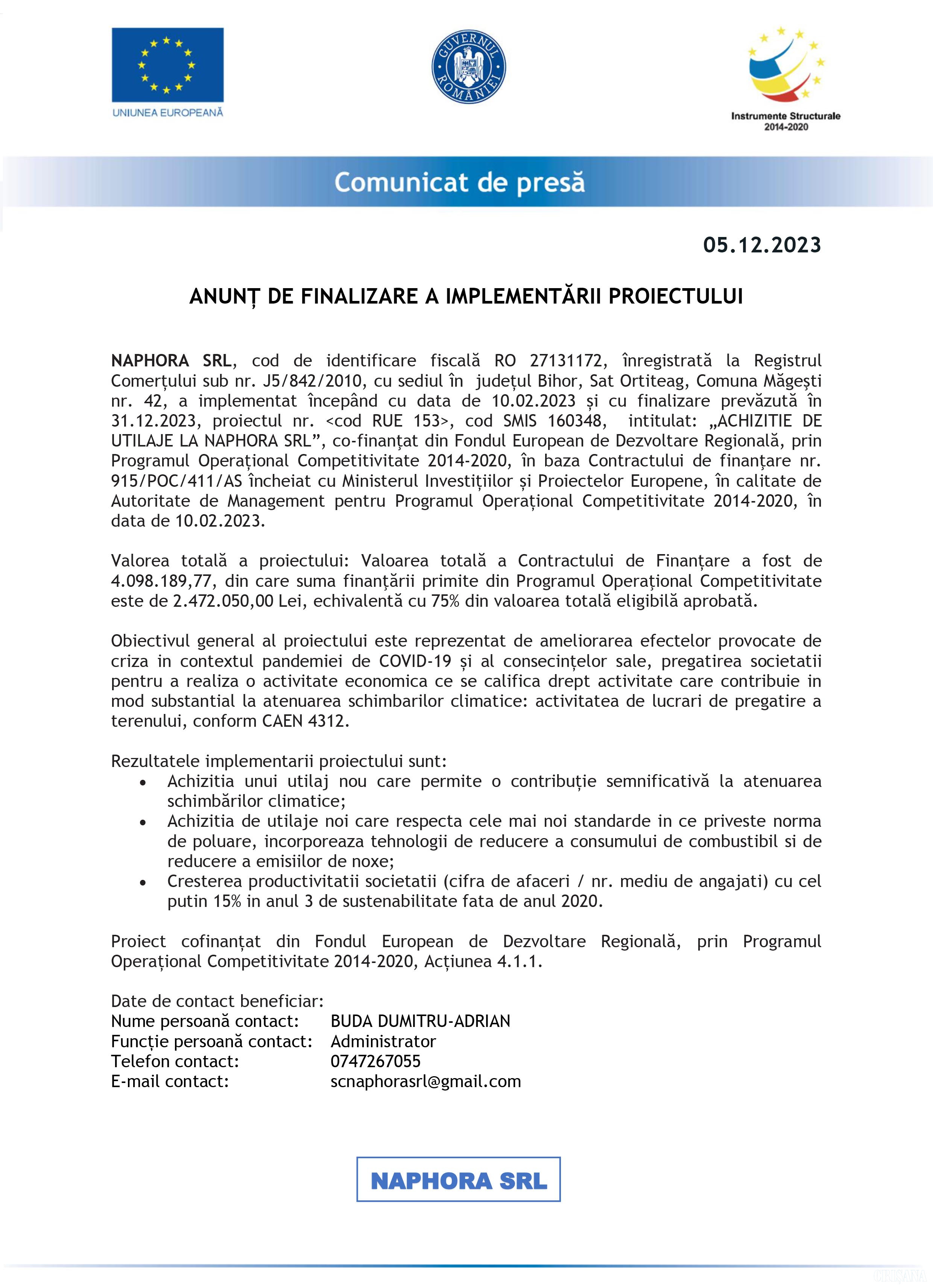 Comunicat de presă 05 Decembrie 2023 154 1 0 Advertorial Comentarii Nu există nici un comentariu. Adaugă opinia ta Poţi adăuga un comentariu completând formularul de mai jos. Decizia de publicare a opiniilor dvs. ne aparţine în întregime. Responsabilitatea juridică pentru conţinutul comentariilor dvs. va revine în exclusivitate. Nume * Subiect * Comentariu