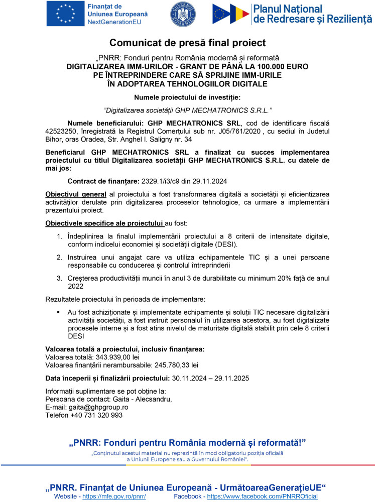 Comunicat de presă al GHP Mechatronics 28 Noiembrie 2025 23 1 0 Advertorial Comentarii Nu există nici un comentariu. Adaugă opinia ta Poţi adăuga un comentariu completând formularul de mai jos. Decizia de publicare a opiniilor dvs. ne aparţine în întregime. Responsabilitatea juridică pentru conţinutul comentariilor dvs. va revine în exclusivitate. Nume * Subiect * Comentariu