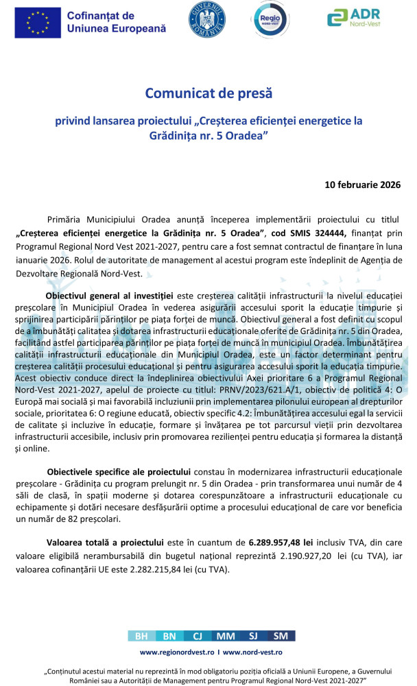 Comunicat de presă al Primăriei Oradea 10 Februarie 2026 29 1 0 Advertorial Comentarii Nu există nici un comentariu. Adaugă opinia ta Poţi adăuga un comentariu completând formularul de mai jos. Decizia de publicare a opiniilor dvs. ne aparţine în întregime. Responsabilitatea juridică pentru conţinutul comentariilor dvs. va revine în exclusivitate. Nume * Subiect * Comentariu