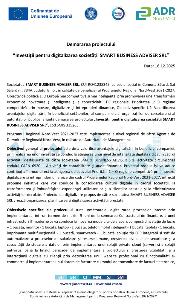 Comunicat de presă al societății Smart Business 18 Decembrie 2025 49 1 0 Advertorial Comentarii Nu există nici un comentariu. Adaugă opinia ta Poţi adăuga un comentariu completând formularul de mai jos. Decizia de publicare a opiniilor dvs. ne aparţine în întregime. Responsabilitatea juridică pentru conţinutul comentariilor dvs. va revine în exclusivitate. Nume * Subiect * Comentariu