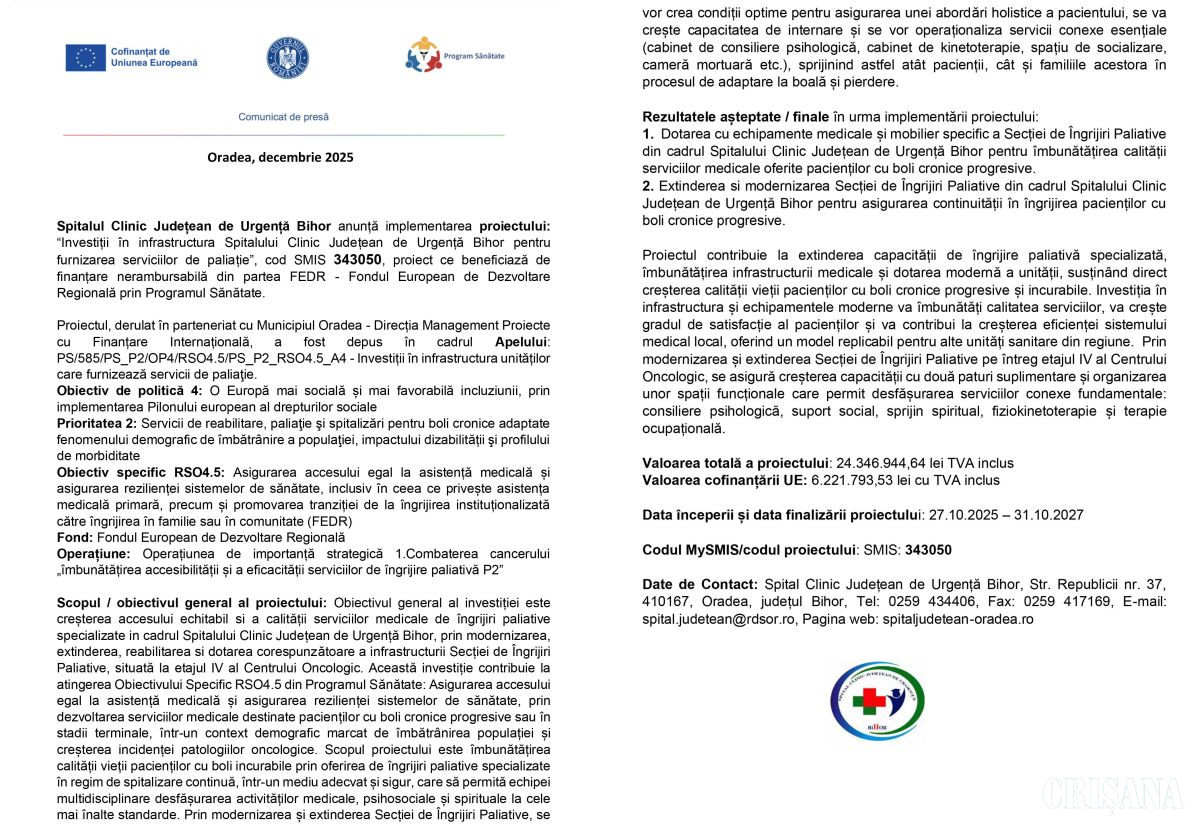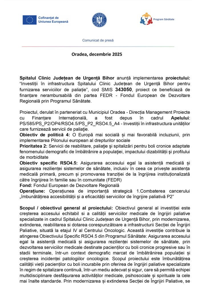 Comunicat de presă al Spitalului Clinic Județean de Urgență Bihor 18 Decembrie 2025 64 1 0 Advertorial