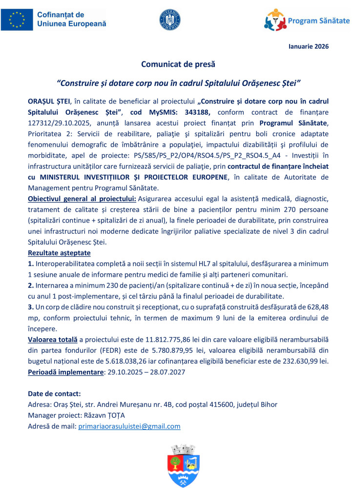 Comunicat de presă al UAT Ștei 13 Ianuarie 2026 55 1 0 Advertorial Comentarii Nu există nici un comentariu. Adaugă opinia ta Poţi adăuga un comentariu completând formularul de mai jos. Decizia de publicare a opiniilor dvs. ne aparţine în întregime. Responsabilitatea juridică pentru conţinutul comentariilor dvs. va revine în exclusivitate. Nume * Subiect * Comentariu