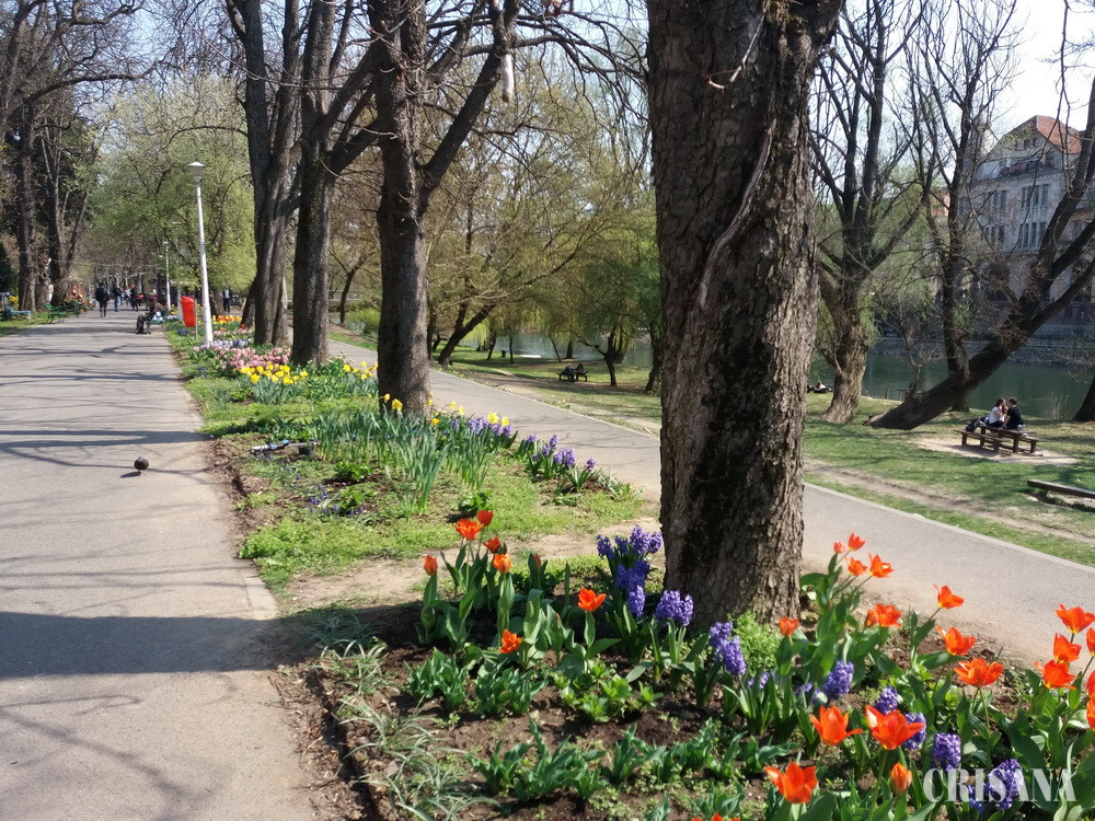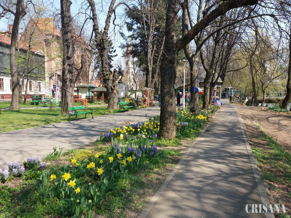 Zeci de flori de primăvară colorează, în această perioadă, Parcul Libertății din Oradea, spre încântarea orădenilor care au drum pe malul Crișului, lângă Podul Intelectualilor. Trecătorii se opresc să admire aceste flori minunate, fascinați de diversitatea lor coloristică.