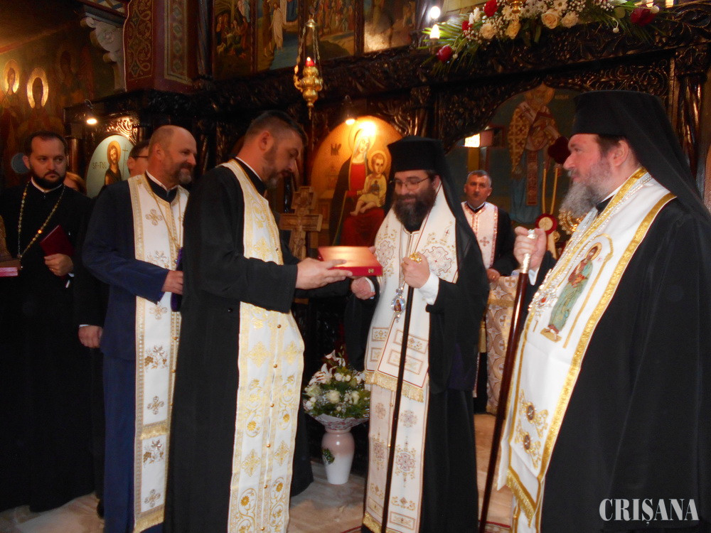 PS Sofronie a prezentat noua organizare a ortodoxiei românești în diasporă, acolo unde trăiesc comunități mari de români. În Europa și America, Biserica Ortodoxă Română, s-au înființat eparhii care alcătuiesc trei Mitropolii: a Europei Centrale și de Nord; a Europei Centrale și Meridionale, din care face parte și Episcopia Spaniei și Portugaliei și Mitropolia celor două Americi. Cuvinte frumoase au fost adresate PS Timotei pentru buna organizare a Eparhiei, precum și pentru frumoasa Catedrală Episcopală de la Madrid. Apreciază activitatea pastorală a PS Timotei, precum și cuvântul de învățătură transmis credincioșilor. Încheie cuvântul său prin afirmația: „ortodoxia nu este o simplă religie, ci un mod de viță, în care se simte adierea Duhului Sfânt”. Apoi, preotul paroh Călin Ioniță, ca semn de recunoștință și apreciere oferă celor doi ierarhi câte o cruce de lemn sculptată cu chipul Mântuitorului și o plachetă cu frontispiciul Bisericii. Un eveniment pe care nu-l putem trece cu vederea s-a petrecut în cadrul Sfintei Liturghii, când în premieră corul nou înființat al Bisericii a cântat 4 pricesne, creând un moment înălțător. Corul a fost înființat și dirijat de prof. Mădălina Ioniță. A urmat apoi în cadrul unui ceremonial militar-religios sfințirea unei plăci comemorative așezată pe frontispiciul bisericii.