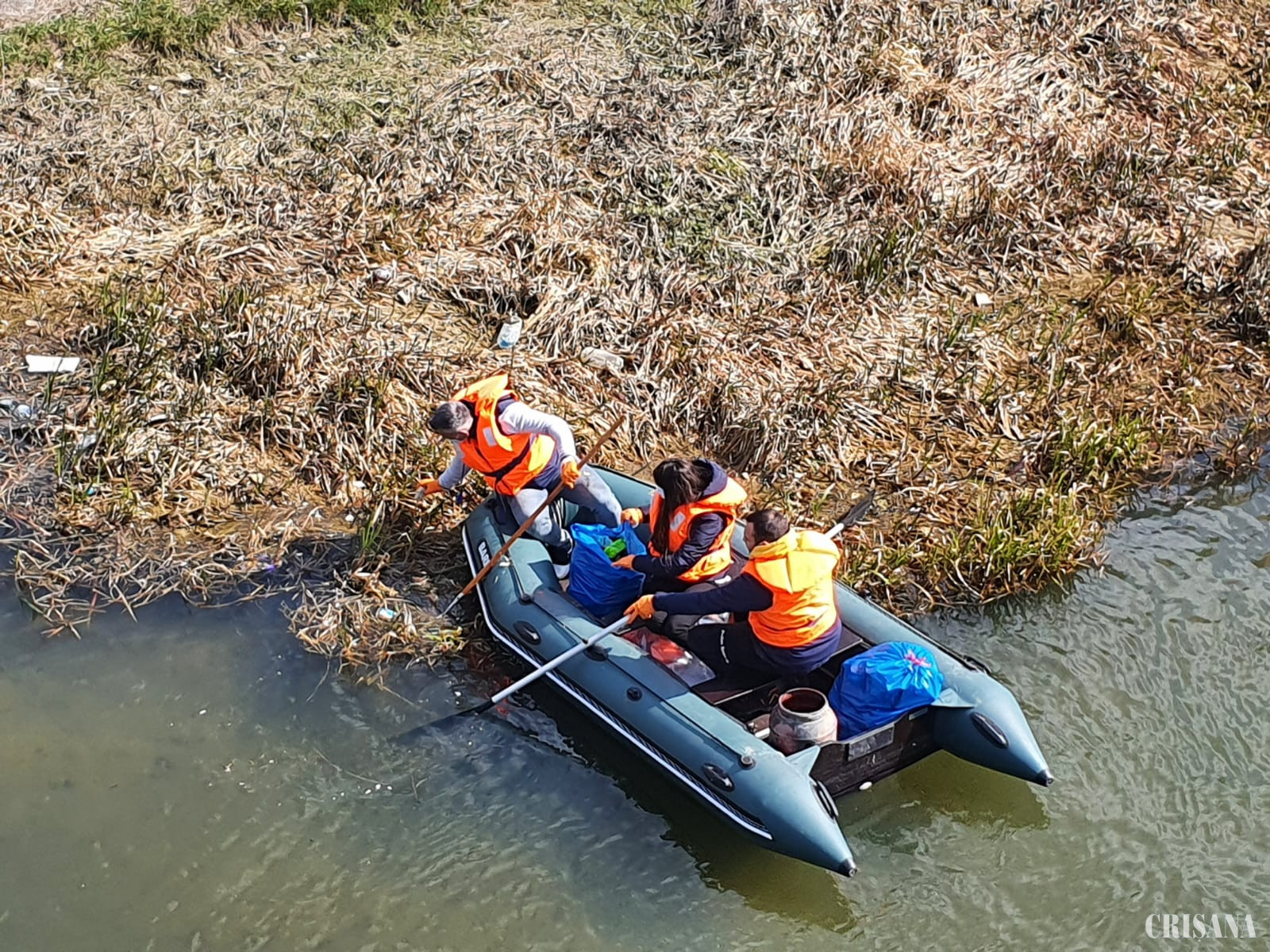 Angajații ABA Crișuri, acțiune pe Crișul Repede - La curățenie cu barca