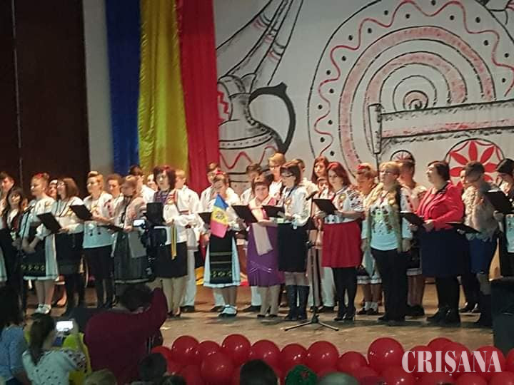 Un moment foarte aplaudat în desfășurarea spectacolului a fost prezentarea de către elevii din Republica Moldova a unui colaj de cântece și dansuri tradiționale, aceștia purtând cu mândrie costumul popular.