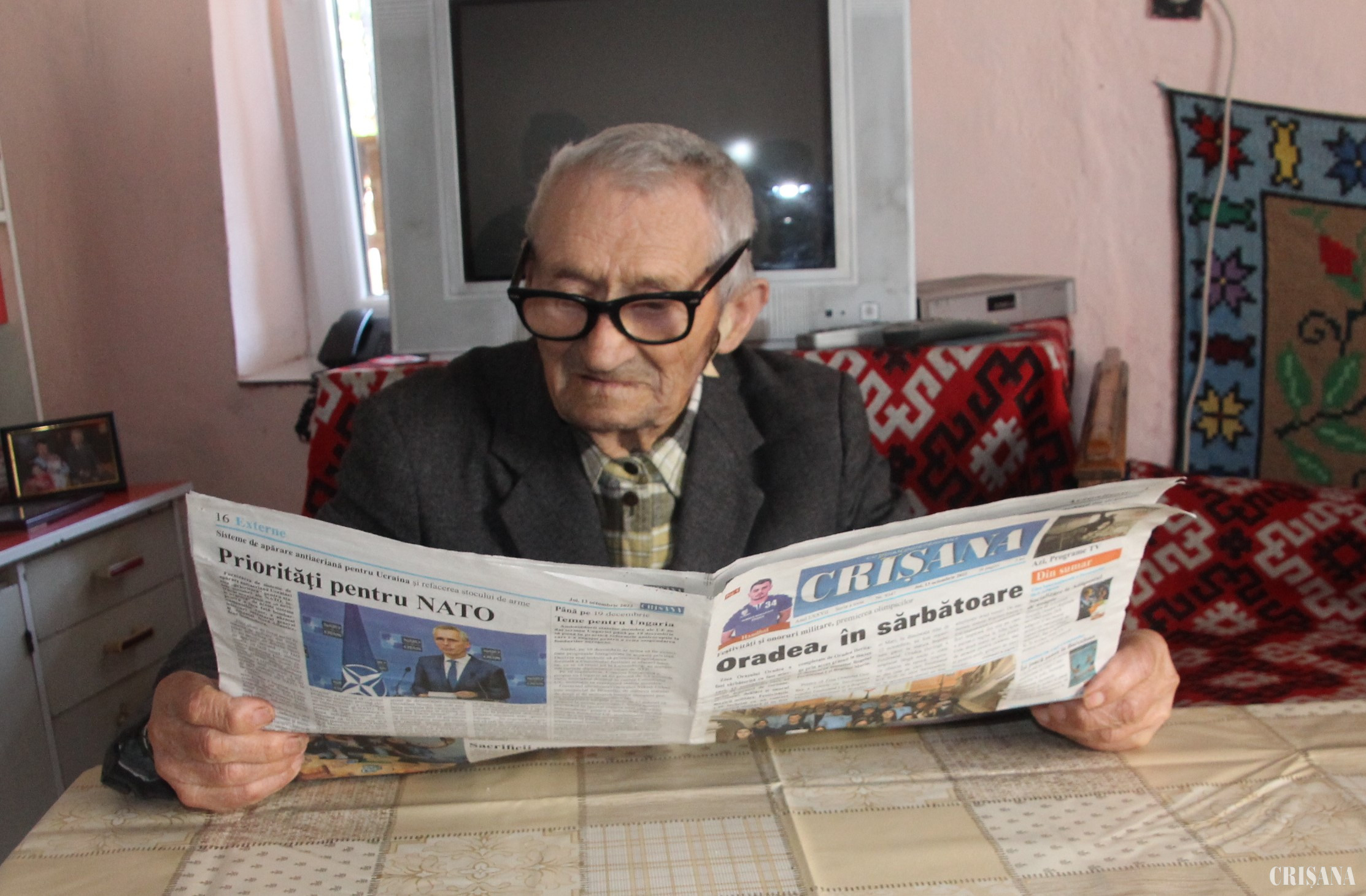 Deconspirat fiind de către cineva din familie, „Baciu Crișan”, așa cum este cunoscut în satul în care trăiește încă din anul 1949, a fost surprins plăcut când am trecut pragul casei sale, iar în momentul prezentării, chipul său, pur și simplu, s-a luminat, deoarece fiind un cititor fidel al ziarului CRIȘANA, am fost considerat imediat prietenul lui. Sincer, cu cea mai mare responsabilitate pot să afirm - iar cititorii cotidianului nostru cunosc acest aspect - am mai scris câteva articole despre persoane care au împlinit un secol de viață, dar de această dată am rămas foarte surprins de interlocutorul meu, Dumitru Crișan - care va împlini frumoasa vârstă de 100 de ani pe 24 decembrie 2022 - care a dat dovadă de o vitalitate incredibilă, de o agerime a minții formidabilă, dar mai ales de vasta lui cultură în nenumărate domenii. Vizita, care s-a dovedit a fi foarte inspirată, a fost făcută în preajma unei mari sărbători creștine, Sfântul Dumitru, Izvorâtorul de mir, sărbătorită atât în Biserica Ortodoxă cât și în Biserica Catolică. Dumitru Crișan a văzut lumina zilei la 24 decembrie 1922, în satul Ateaș, comuna Cefa, fiind fiul lui Gheorghe și Elena, mai având două surori. Absolvent a 7 clase, el a avut ca ocupație munca câmpului până în anul 1943 atunci când a fost încorporat în armată.