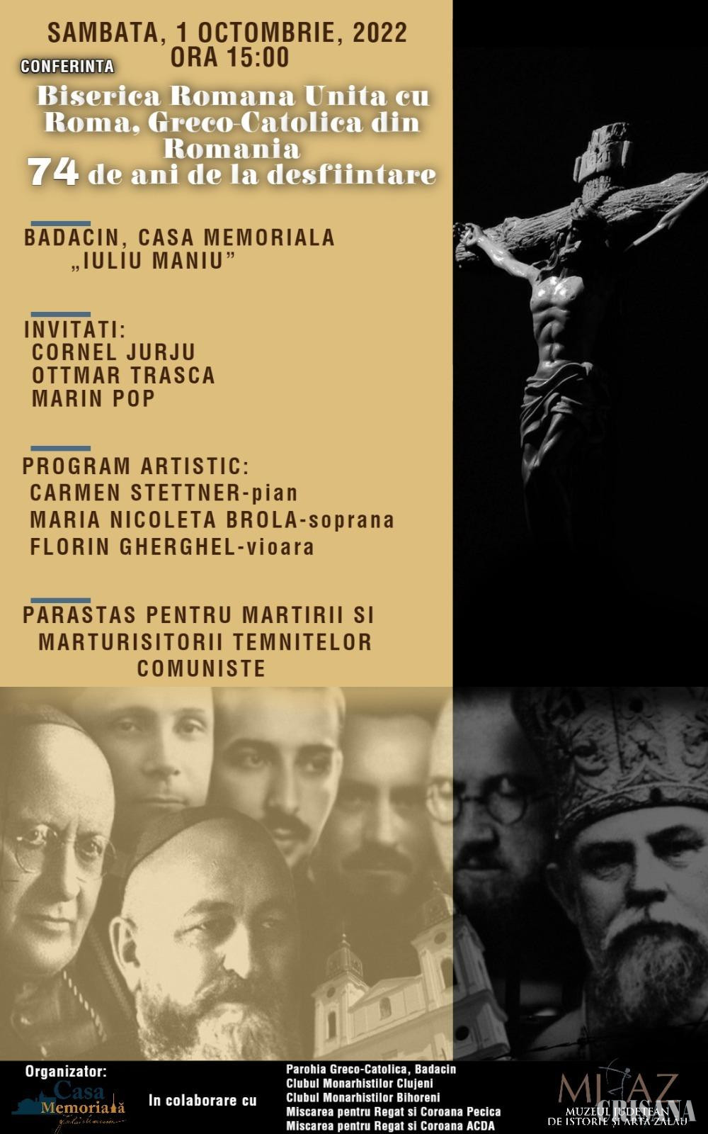 Casa Memorială „Iuliu Maniu”, în parteneriat cu Muzeul Județean de Istorie și Artă Zalău, Mișcarea pentru Regat și Coroană Pecica, Mișcarea pentru Regat și Coroană ACDA, Clubul Monarhiștilor Clujeni, Clubul Monarhiștilor Bihoreni și Parohia Greco-Catolică, Bădăcin, organizează evenimentul cultural „Biserica Română Unită cu Roma, Greco - Catolică - 74 de ani de la desființare”. Evenimentul va avea loc la Casa Memorială „Iuliu Maniu”, Bădăcin, sâmbătă, 1 octombrie, începând cu ora 15.00. Manifestările se vor desfăşura după următorul program: ora 15.00, Simpozionul: „Biserica Română Unită cu Roma, Greco - Catolică - 74 de ani de la desființare”, invitați istoricii: Ottmar Trașcă, Cornel Jurju, Marin Pop.