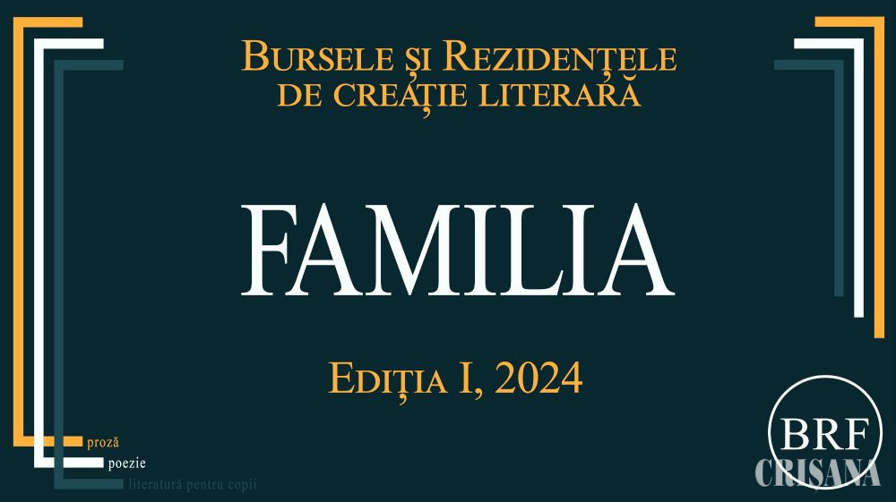 Revista de cultură „Familia”, în parteneriat cu Biblioteca Județeană „Gheorghe Șincai” Oradea și Consiliul Județean Bihor, anunță prima ediție a Burselor și rezidențelor de creație literară „Familia”.