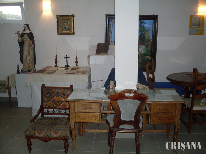 Camera mică ce se deschidea din salon, era capela. Era acolo un altar frumos, din lemn sculptat, erau icoane, îngenuncher, odăjdii, potir, sfeşnice - tot ce se cuvenea într-un loc de rugăciune. O candelă ardea mereu, semn că acolo se găsea Sfântul Sacrament. În duminici şi sărbători, dacă nu se nimerea să fie vreun preot din familie, preotul din sat celebra acolo Sfânta Litrughie. La slujbă participau toţi ai casei de la servitor la ultimul nepoţel prezent acolo, de multe ori participau şi oameni din sat, fiindu-le mai aproape aici decât bisericuţa din celălalt capăt al satului, sau poate pentru că le era mai drag să se închine aici, alături de „Preacuvioasa Soră”.