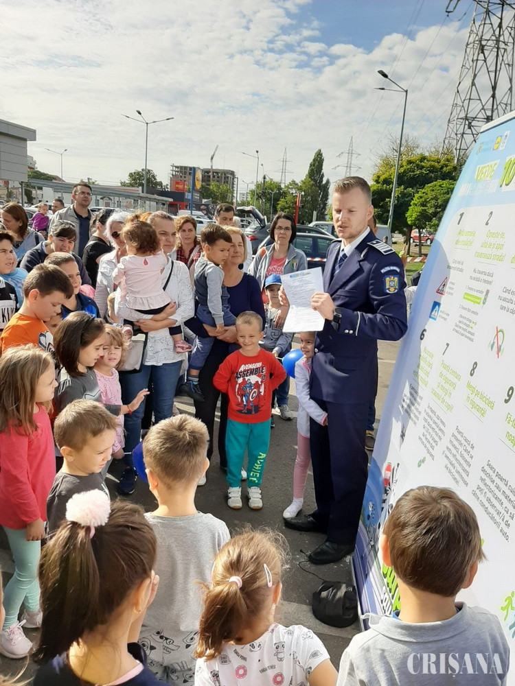 Peste 300 de copii și părinți au fost implicați de poliţiştii bihoreni într-o inedită lecție de educație rutieră, sâmbătă, 28 septembrie. Cu ajutorul jocului „Surprize sau amenzi?”, polițiștii i-au ajutat pe cei mici să asimileze, prin joc și premii, regulile de circulație, oferindu-le șansa de a deveni pietoni responsabili.