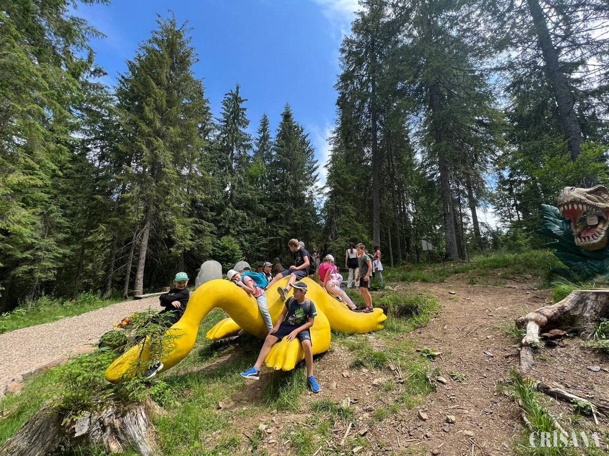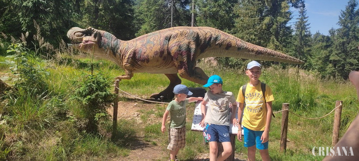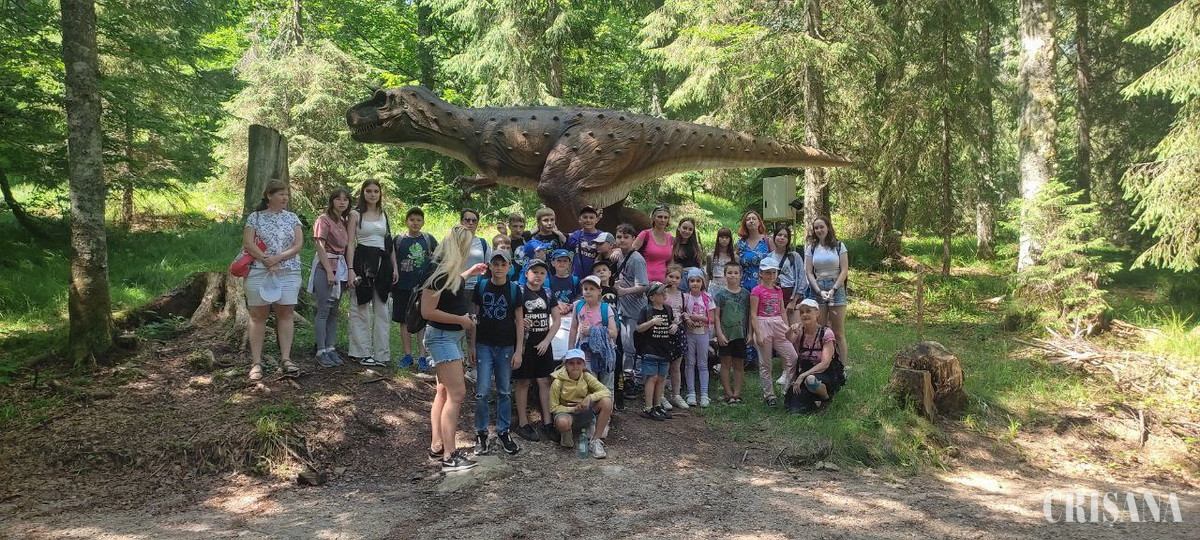Pe drum, s-au aprovizionat cu bunătăți de la o patiserie din Beiuș. Ajunși la Stână, prima dată, s-au oprit pentru gustare, după care au pornit pe traseu, pentru întâlnirea cu dinozaurii din Dino Parc. Copiii s-au arătat impresionați de dimensiunea unor specii de dinozauri sau de sunetele scoase de exemplarele expuse. A fost ceva deosebit pentru fiecare dintre participanți. S-au realizat multe poze și s-a râs mult.