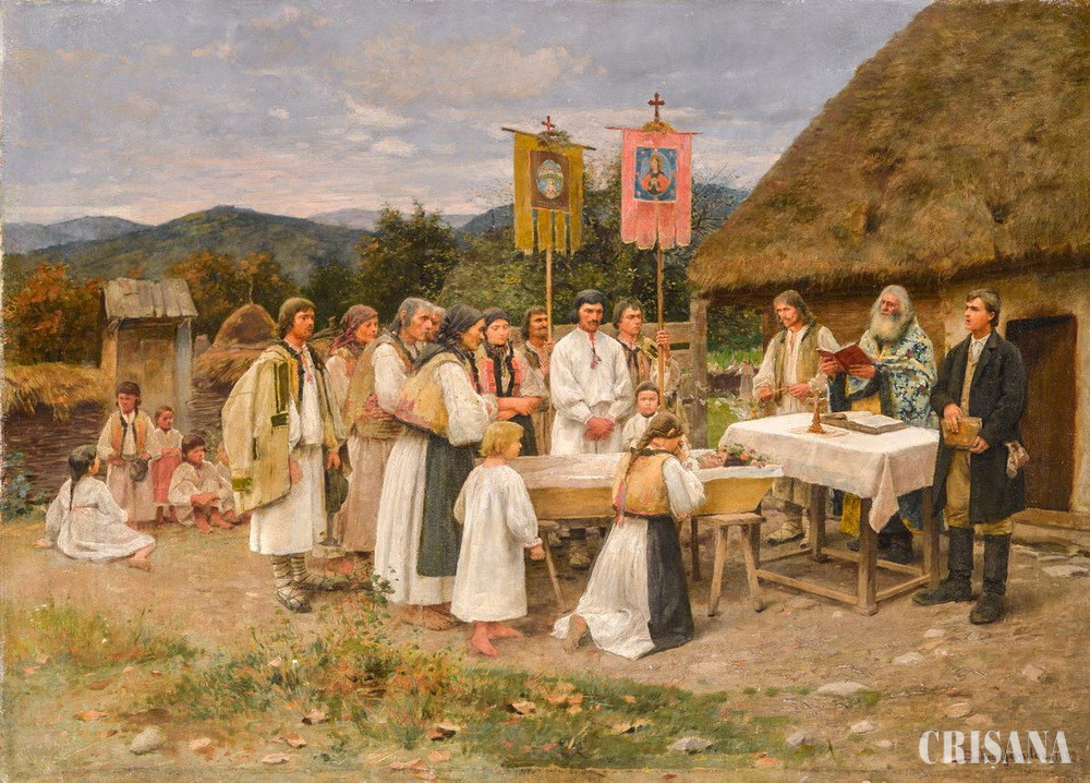 „Recent, după ani de eforturi, am aflat, personal, cea mai veche documentaţie grafică reprezentând portul din Ţara Beiuşului. Este vorba despre o pictură veche, uitată, aflată la Galeria Naţională de Artă a Ungariei, Budapesta. Lucrare de o valoare inestimabilă, superbă ca tematică, compoziție şi execuţie, o pânză în stilul romantic târziu, intitulată „Oláh Temetés”, adică „Înmormântare Românească”, pictată de Bihari Sandor (1855-1906), un mare pictor evreu originar din Băița, județul Bihor. Ulterior, el a făcut academia la Viena şi a pictat în Austria, Ungaria, Italia, Elveția şi Franța. Imaginea reprezintă o familie îndurerată de români dintr-un sat de munte, probabil Sighiştel, Măgura sau Chişcău, care îngroapă o femeie ce pare să fi murit prematur, aşezată într-un sicriu acoperit cu flori.