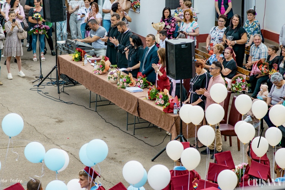 Cei prezenți nu și-au putut ascunde emoțiile atunci când a răsunat „Gaudeamus igitur”, când baloanele și-au luat zborul spre înaltul cerului, ca un simbol al aspirațiilor absolvenților, când aceștia au schimbat panglicile albe cu cele roz ale elevilor de clasa a XI-a și mai ales atunci când, împreună cu diriginții, profesorii Mihaela Haneș și Dan Ispas, componenții promoției de liceeni 2025 au făcut turul de rămas bun, însoțiți „muzical” de soneria școlii.