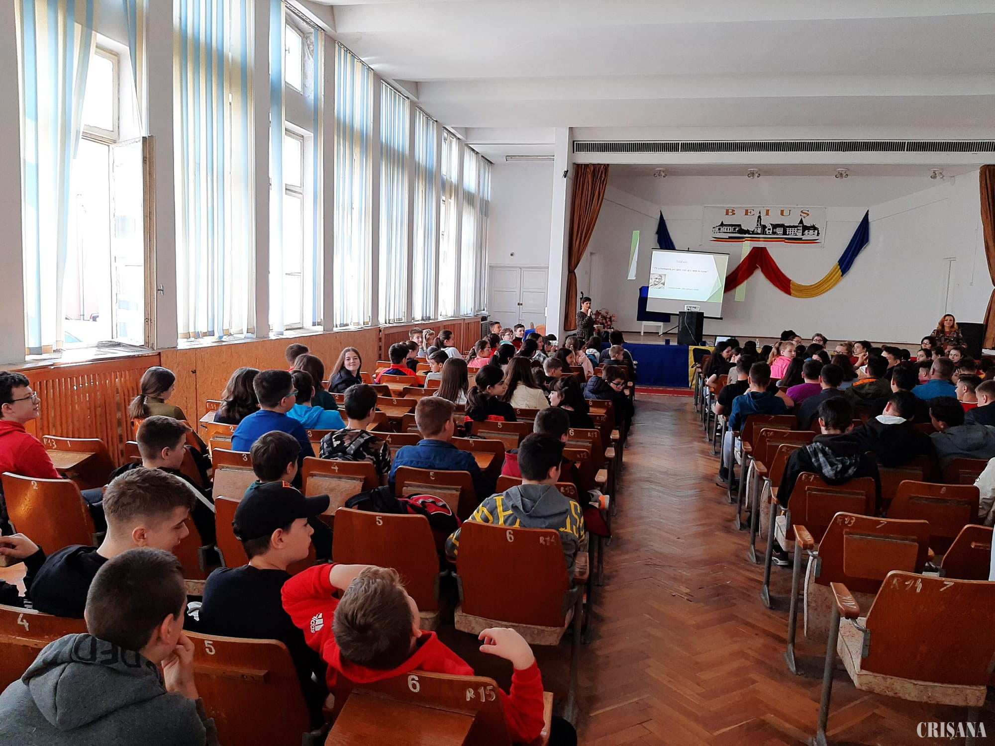 Elevii au vizionat un documentar privind traseul de prelucrare a deșeurilor colectate selectiv și un film documentar privind acțiunile de igienizare a râului Crișul Repede, desfășurate în cadrul campaniei de ABA Crișuri.