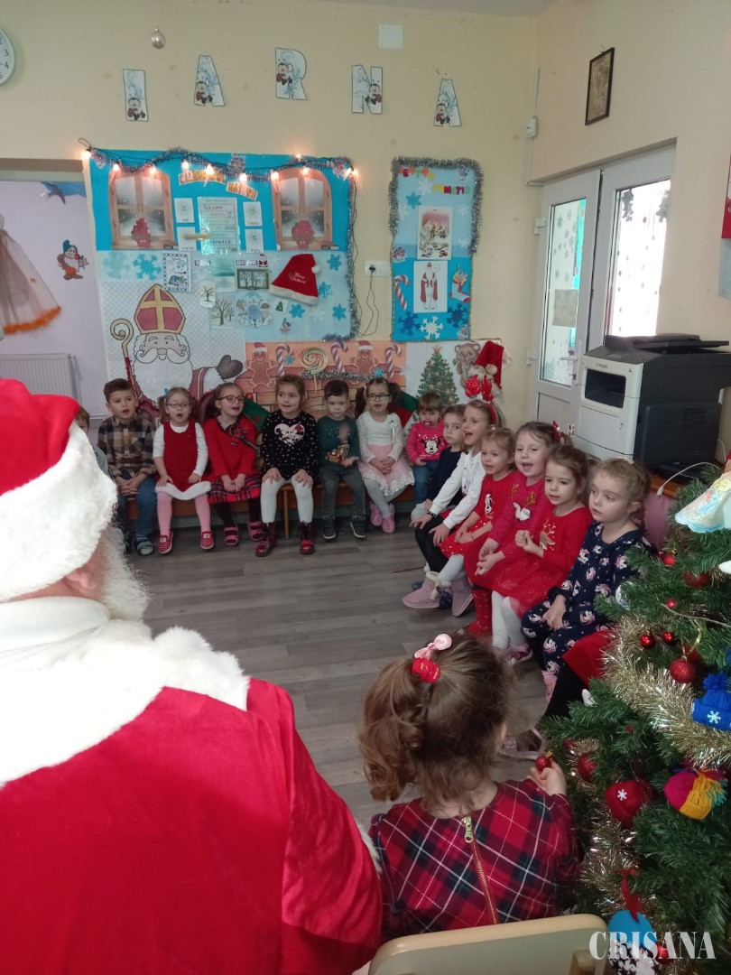 „Împreună cu părinții și copiii, am avut activitatea ,,Atelierul lui Moș Crăciun”. Cu toții am confecționat decorațiuni de Crăciun, părinții au împodobit bradul, iar copiii au colindat pentru Moș Crăciun. Pentru că au fost cuminți tot anul, preșcolarii au primit cadouri de la Moșul cel bun și darnic și s-au fotografiat cu el”, ne-a declarat prof. înv. preșc. Anca Morna.