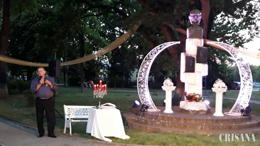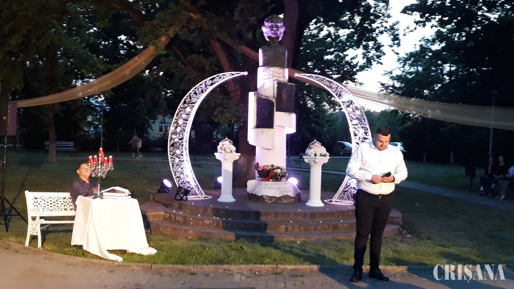 Organizat de Consiliul Local, Primăria și Casa de Cultură ale municipiului Beiuș, în fața bustului poetului din parcul ce-i poartă numele, spectacolul „Eminescu – om, geniu și sfânt” a fost urmărit de numeroși beiușeni, printre aceștia aflându-se primarul Petru Mlendea-Căluș, Nicolae Brânda, președintele Asociației Culturale „Lioara”, și Iosif Tocoian, secretarul aceleiași entități – inițiatorii demersurilor pentru ridicarea monumentului menționat – și îndrăgiții artiști lirici Florina și Florin Mariș-Hinsu.