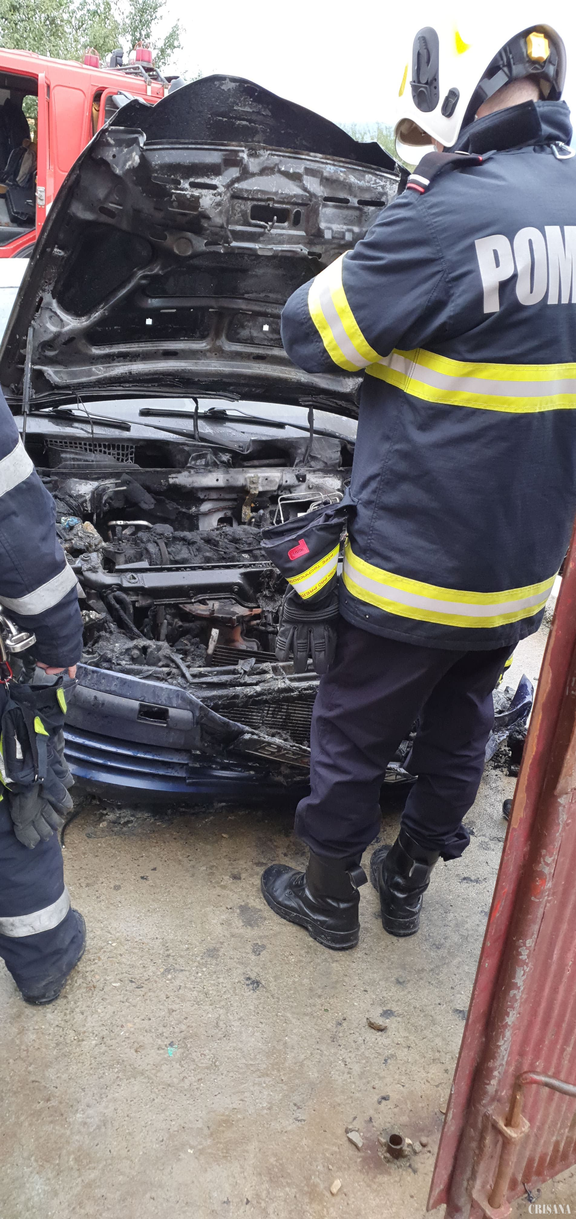 Evenimentul, a cărui cauză probabilă a constituit-o un scurtcircuit electric, s-a soldat cu arderea autovehiculului în proporție de circa 90% și a 160 de cutii de încălțăminte. Tot vineri dimineață, în jurul orei 08.25, în dispeceratul Inspectoratului pentru Situații de Urgență “Crișana” a fost primit un apel care sesiza producerea unui eveniment similar în localitatea Cheriu, comuna Oșorhei. Pentru gestionarea situației de urgență semnalate, la adresa indicată de apelant, au fost mobilizați pompierii Detașamentului 1 Oradea, care au localizat și lichidat incendiul în aproximativ 15 minute de la primirea apelului prin 112. În urma producerii incendiului, provocat, cel mai probabil, de un conductor electric defect, au ars materialele combustibile din compartimentul motor, capota, aripile și masca față. Din fericire, nu au existat perspane rănite.
