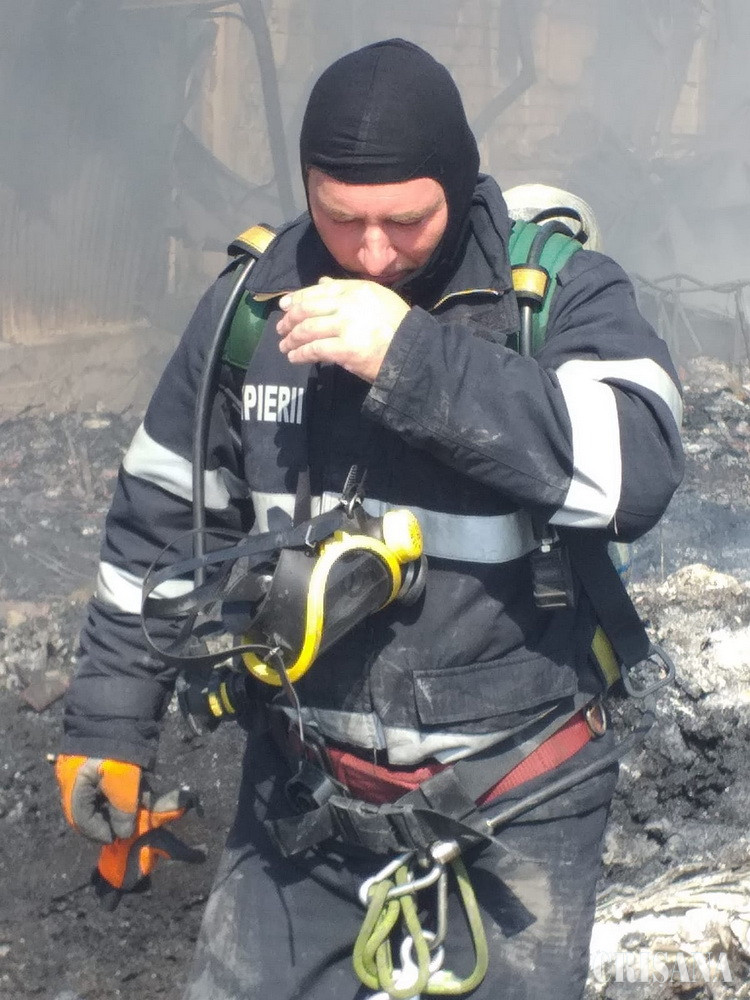 După cum se ştie, incendiul s-a manifestat violent atât în curtea depozitului, cât și la trei hale (două construite pe o suprafață de circa 600 de metri pătrați fiecare și una, pe circa 1300 de metri pătrați), flăcările, alimentate de cantitatea mare de materiale combustibile depozitate în clădire și de vântul puternic, ameninţând să se propage la clădirea unei alte firme situate la mai puțin de un metru de una dintre cele trei hale în flăcări. Acțiunea de stingere a fost îngreunată de existența numeroaselor materiale combustibile depozitate pe o suprafață totală de circa 8000 de metri pătrați, ce au favorizat dezvoltarea, pe timpul arderii, a unor temperaturi înalte şi degajări masive de gaze şi fum, de modul de depozitare a acestor materiale atât în curte, cât și hale, care îngreuna acțiunea directă asupra focarelor, dar și de insuficiența surselor de apă în apropiere (doi hidranți), alimentarea autospecialelor realizându-se în sistem navetă, de la un alt operator economic și de la hidranții din municipiu. Dată fiind amploarea incendiului și condițiile dificile de desfășurare a operațiunii, inspectorul șef, colonel Caba Sorin Mihai, care a coordonat și condus operațiunea în teren, a ordonat suplimentarea forțelor și mijloacelor de intervenție, astfel că, pentru localizarea și lichidarea focarelor, respectiv pentru împiedicarea propagării flăcărilor la vecinătăți, un număr de peste 60 de pompieri militari din cadrul a șase subunități au acționat cu nouă autospeciale de lucru cu apă şi spumă, la locul intervenției fiind mobilizate și alte nouă autospeciale de suport logistic (care au transportat personal de intervenție, combustibil, spumogen, butelii cu aer comprimat etc.). La ora 06.20 incendiul a fost localizat, iar în jurul orei 09.25 echipajele au reușit să pătrundă în incinta depozitului, pompierii acționând asupra focarelor atât din interior, cât și din exteriorul amplasamentului, realizând un dispozitiv circular de stingere. Incendiul a fost stins la ora 13.25, echipajele de pompieri militari acționând în continuare și la această oră pentru căutarea și lichidarea focarelor ascunse și înlăturarea efectelor negative. Deși mesajul RO-Alert pentru avertizarea populației a fost pregătit imediat după primirea apelului care sesiza producerea evenimentului, nu s-a impus transmiterea acestuia, întrucât vântul bătea în direcția nord-vest, îndepărtând norul de fum și gaze toxice în direcția opusă municipiului, astfel că nu a existat pericol pentru populație.