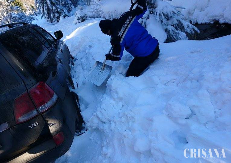 Luni, la ora 17.30, la Postul de Jandarmi Montan Stâna de Vale, s-a prezentat o persoană care a solicitat ajutor pentru că a rămas înzăpezită cu mașina, pe drumul dintre stațiunea Stâna de Vale și Izvorul Minunilor. Jandarmii s-au deplasat la fața locului pentru a acorda ajutor și a repune autovehiculul pe drum, iar la ora 19.00, autoturismul, marca Mitsubishi Pajero, a fost repus pe carosabil. Persoana implicată în incident nu a avut nevoie de îngrijiri medicale și a fost ajutată să ajungă în stațiunea Stâna de Vale.