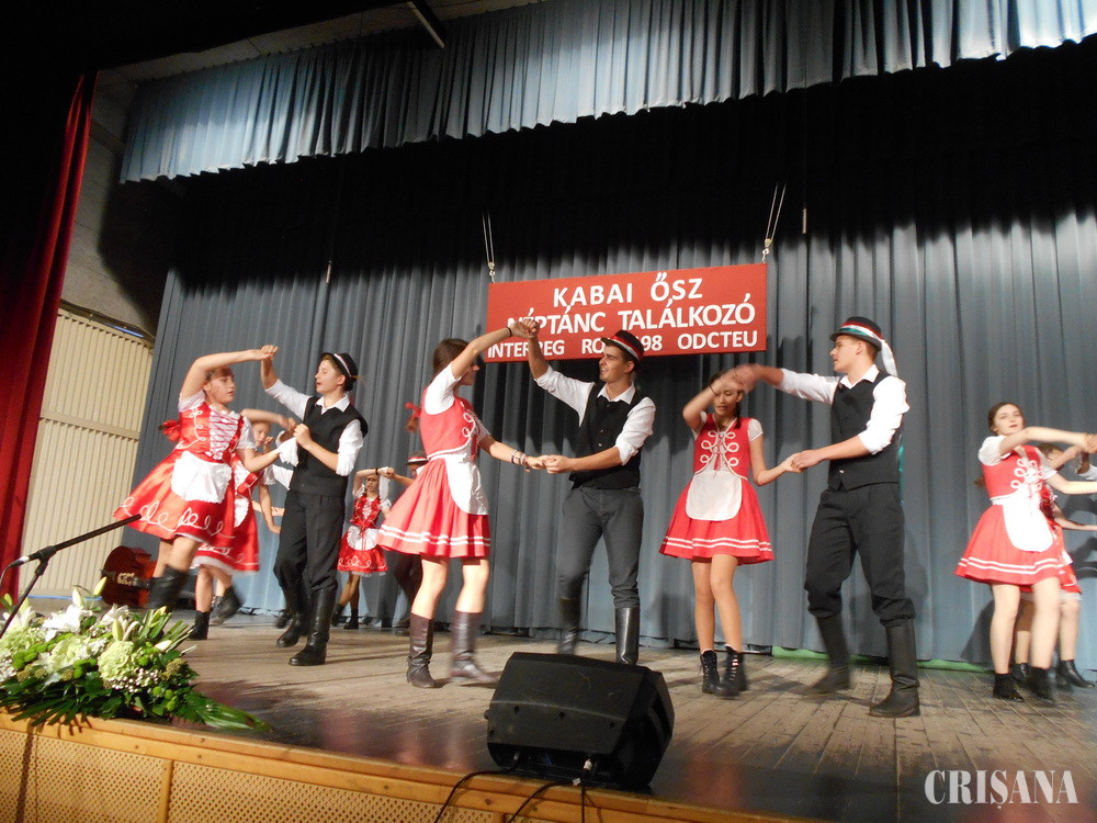 Oaspeții români au deplasat în Ungaria Ansamblul folcloric „Datina”, al Colegiului Tehnic „Alexandru Roman”, și Ansamblul slovac „Poleanka”, al organizației locale a UDSCR Aleșd. Locația evenimentului a fost Casa orășenească de cultură și platoul din fața sa. A precedat spectacolul o paradă a portului popular prezentat de formațiile de dansuri maghiare, românești și slovace, care, având ca ghid un călăreț, au urmat un traseu prin câteva străzi din oraș. Apoi, pe platoul din fața Casei de Cultură, dansatorii maghiari, români și slovaci, pe fundalul muzical al unui taraf local, s-au prins într-o horă a prieteniei. Spectacolul a fost precedat de cuvântul d-nei Szegi Emma, primar al orașului Kaba, și al lui Ioan Todoca, primar al orașului Aleșd. Cei doi au prezentat publicului proiectul european care se derulează având ca parteneri cele două orașe și care a demarat la Aleșd în data de 31 august. A urmat un adevărat spectacol de gală susținut de formațiile de dansuri din cele două orașe. Gazdele au prezentat o diversitate de dansuri tradiționale maghiare, în interpretarea a trei echipe formate din copii, tineri și o echipă de elită. Am remarcat preocuparea gazdelor de păstrare și conservare a tradițiilor, a costumelor și a folclorului autentic. De un deosebit succes s-a bucurat Ansamblul folcloric „Datina” al Colegiului Tehnic „Alexandru Roman” din Aleșd, coordonator prof. Cristian Strugar, precum și solista Daiana Marușca. Nivelul înalt de interpretare şi perfecta sincronizare le dă dansatorilor statutul de semi-profesioniști. Chiar dacă orașul Aleșd nu are tradiții folclorice, Cristi Strugar, prin componența membrilor ansamblului, promovează folclorul autentic din zonă. Ansamblul „Datina”, care se bucură de sprijinul conducerii colegiului și, sperăm, și al Consiliului local, a devenit o emblemă a orașului Aleșd prin premiile câștigate la mari festivaluri din țară. O comportare meritorie a avut și Ansamblul slovac „Poleanka”, aplaudat pentru originalitate și virtuozitate. Diversitatea și interferența unor elemente din folclorul românesc și maghiar apropie cetățenii din cele două orașe, contribuind la procesul de integrare europeană.