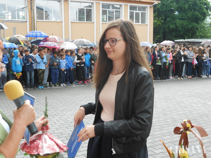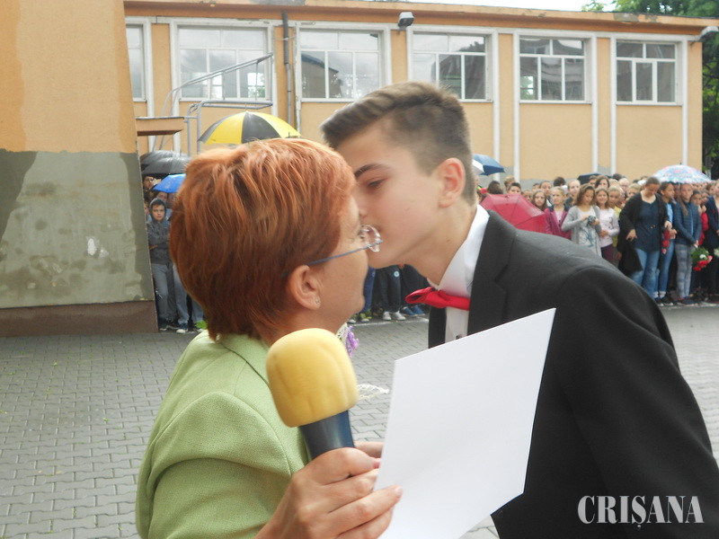 Mai mult de jumătate dintre absolvenți au încheiat clasa a VIII-a cu medii generale peste 9. Dintre ei se detașează Evelina Gal și Mihnea Gabrian, care au încheiat ciclul celor 8 ani de școală cu media generală 10. Un fapt ce nu poate fi trecut cu vederea este cel al elevei Mădălina Macovei, care, deși își petrece viața într-un scaun cu rotile, ca urmare a unei grave maladii, a reușit să termine clasa a VIII-a cu media generală 9,50. Primită cu drag în colectivul clasei și tratată la fel ca și restul colegilor, Mădălina și-a pus în valoare capacitatea intelectuală, trecând mai ușor peste handicapul său. În discursurile celor cinci diriginți, s-au evidențiat principalele aspecte specifice clasei, cu bune și rele, dar mai ales cu sfaturi și îndemnuri pentru viitor. Am desprins câteva gânduri rostite cu acest prilej: „Fericirea are chipul vostru, emoții, amintiri, lacrimi și zâmbete, flori și speranțe, prietenii și îmbrățișări. Finalul gimnaziului anunță un nou început”. Prof. Mihaela Cureu, profund emoționată întrucât clasa a VIII-a B este prima sa generație pe care a condus-o patru ani, a mărturisit: „Am crescut împreună, am învățat unii de la alții, respectul, bunătatea, toleranța, altruismul, am trecut prin experiențe inedite, am fost pentru voi „diriga„ mama de la școală, prietena sau confidenta voastră. A fi dascăl nu este o simplă profesie, e un privilegiu să poți modela suflete de oameni. Vă mulțumesc și veți rămâne cu siguranță metafore descifrate ale poeziei sufletului meu… Să nu-i uitați pe dascălii voștri, care au picurat lumină în mintea și sufletele voastre, pe părinții voștri, care vă iubesc necondiționat, pe colegii voștri, alături de care v-ați clădit speranțe”. A urmat premierea în ordinea mediilor. Din totalul de 23 elevi în clasa a VIII-a B, doar trei elevi n-au primit diplome de mențiune. Au fost felicitați și cei 5 olimpici. Alături de copii au absolvit și părinții. Rezultatul muncii lor s-a oglindit în copiii pe care, alături de școală, i-au educat, în care au investit „totul”, asigurându-le condițiile necesare pentru dezvoltarea fizică și intelectuală. Asta înseamnă eficiența parteneriatului dintre școală și familie, în care eforturile conjugate sunt finalizate cu succes. Apoi, în ordine alfabetică, cele cinci clase de absolvenți, s-au „întrecut” prin cântece, cu versuri create de ei, spre plăcerea și amuzamentul tuturor. Urmează evaluarea națională, ocazie pentru confirmarea rezultatelor bune obținute prin medii. Succes!