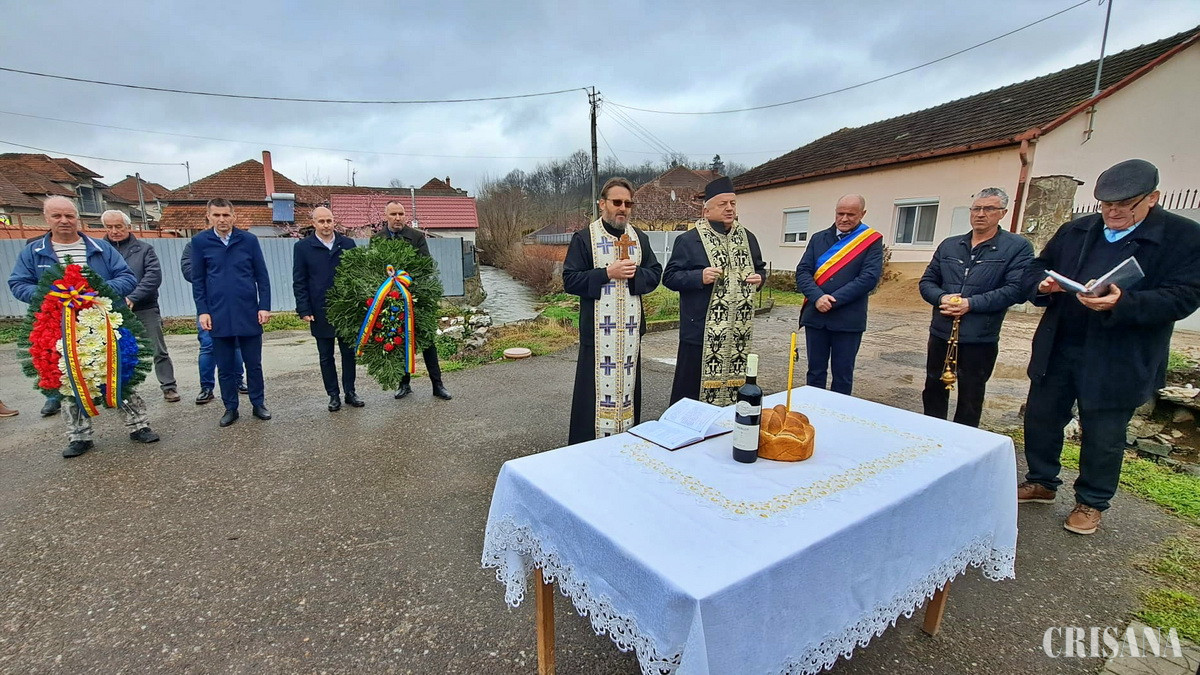Ceremonia comemorativă a început cu slujba de pomenire săvârșită de părintele Cristian Ifrim, împreună cu părintele pensionar Antim Purle, predecesorul său în parohia Lunca.