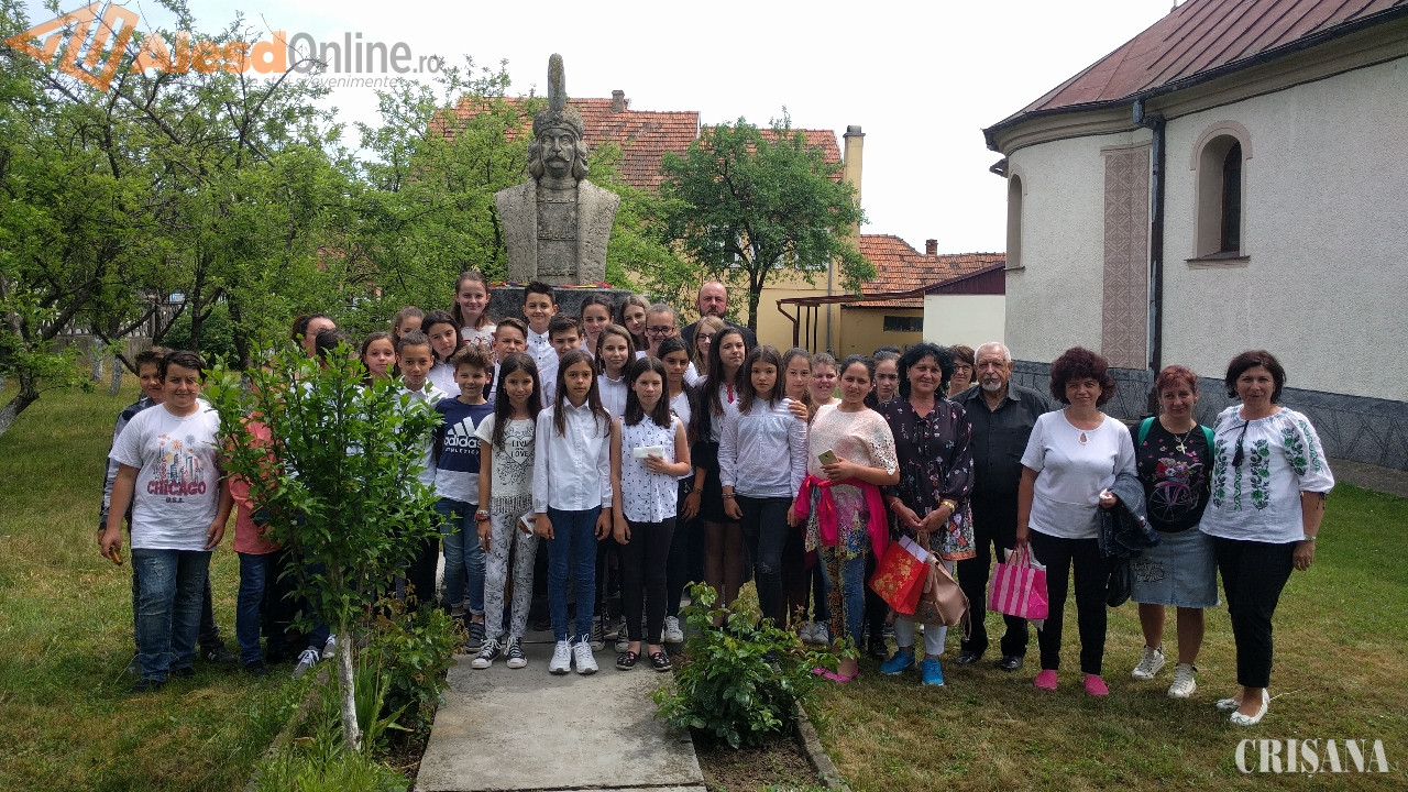 Miercuri, 9 mai, pe o vreme minunată, copiii din clasele a V-a și a VII-a, însoțiți de profesoarele Alina Buzle și Felicia Lele, au pornit la drum spre Tinăud având la ei steaguri și pancarde înscripționate cu logo-ul Centenarului Marii Uniri şi numele Liceului „Constantin Șerban” și „înarmaţi” cu un entuziasm debordant. I-au însoțit colectivul bibliotecii și invitații, care s-au alăturat cântecelor și scandărilor copiilor. Ajunși cu bine la Biserica de piatră de la Tinăud, ei au fost întâmpinați cu inima deschisă și bucurie de părintele Florian Ardelean și profesoara Mariana Ardelean.