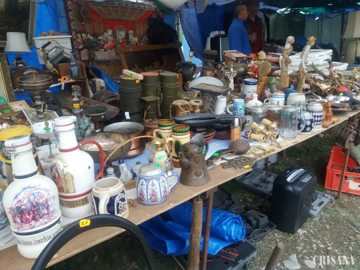 Aici, în zona de antichități, în fața ta se deschide o altă lume, veche, prăfuită, dar care are un farmec aparte. Văzând obiectele ce stau înșirate care pe unde, pe jos, pe mese, pe capota mașinii, e greu să nu îți amintești măcar o clipă de copilărie sau de alte vremuri, demult apuse. Porturile populare, cusăturile tradiționale, farfuriile pictate, cărți vechi, mobilierle antice și multe altele nu sunt doar vechituri, nu sunt doar suveniruri, ci și mărturii ale unei moșteniri culturale bogate.