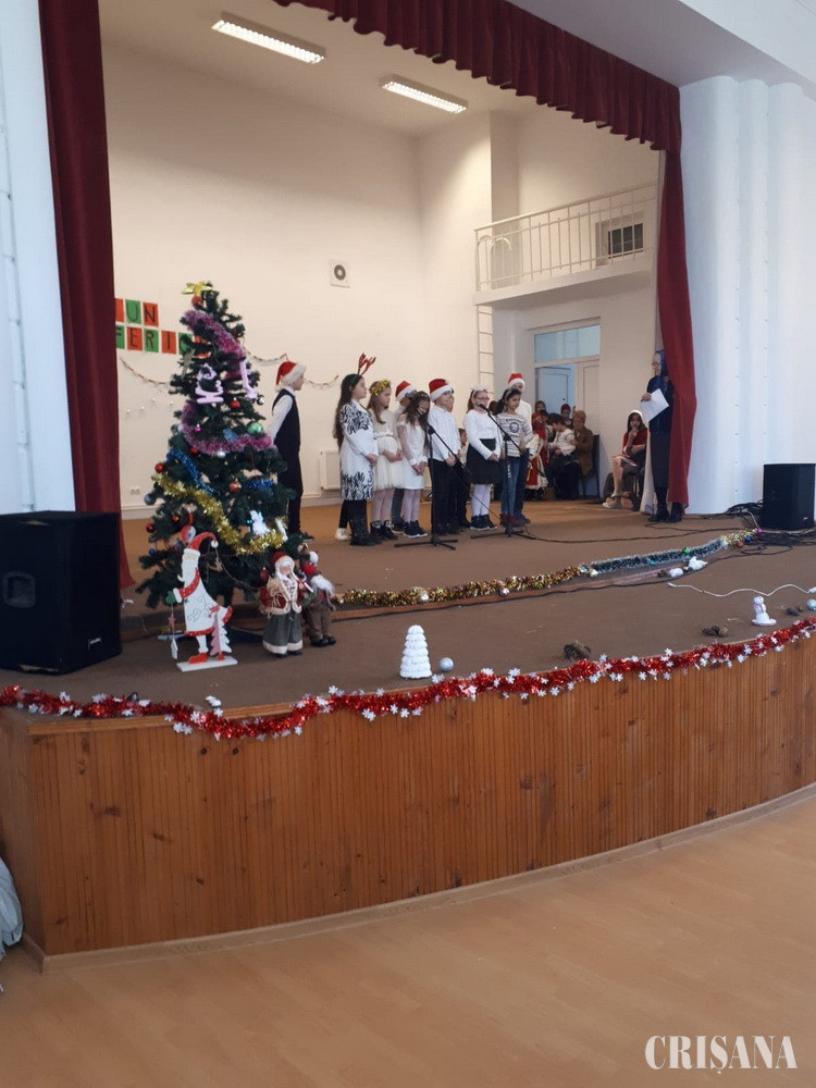...pe la case a ura!”, au fost primele cuvinte ale corului de elevi, joi, 19 decembrie, pe scena Casei de Cultură „Ion Davideanu” Nucet, când elevii Școlii Gimnziale Nr.1 Nucet, a cărei director este prof. Traian Coraș, au susținut un superb spectacol.