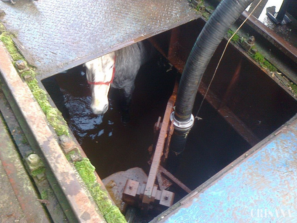 Potrivit mr. Camelia Roșca, purtătorul de cuvând al ISU Bihor, ajunşi la locul indicat de apelant, în jurul orei 21.55, pompierii militari au constatat că animalul se afla într-o fosă septică adâncă de aproximativ patru metri, cu o gură de vizitare/vidanjare de circa 70/70 centimetri, nivelul apei reziduale în interiorul acesteia fiind de circa 1,5 metri. Pentru a preveni intrarea în hipotermie a mânzului, forțele de intervenție au înlăturat apa din bazin cu ajutorul motopompei din dotare, iar după asigurarea condiţiilor de extragere în siguranţă a animalului, la locul intervenţiei a fost adus un utilaj cu dispozitiv de ridicare, cu ajutorul căruia mânzul a fost scos la suprafaţă şi predat proprietarului care, aflat la faţa locului, a participat alături de pompierii militari la acţiunea de salvare. Operaţiunea a fost finalizată în jurul orei 23.55.