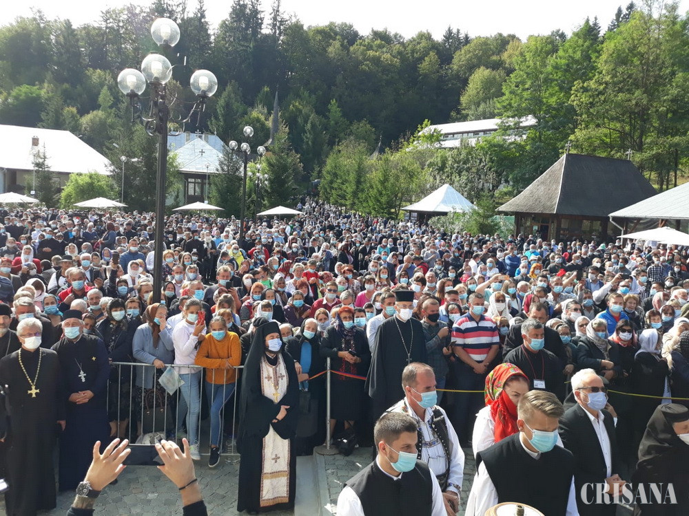 Credincioșii participanți la ceremonia religioasă de la mănăstirea Izbuc au respectat parțial normele impuse de contextul epidemiologic actual, purtând măști de protecție și folosind soluții dezinfectante. De altfel, organizatorii evenimentului au amenajat mai multe puncte de dezinfecție, unde au fost distribuite, totodată, măști de protecție și apă de băut îmbuteliată. Cât privește distanțarea fizică, aceasta a fost mai greu de respectat în condițiile unei asistențe care a numărat aproximativ cinci mii persoane. Tocmai pentru evitarea aglomerației în proximitatea noii biserici, sfintele slujbe au putut fi urmărite de toți credincioșii prin intermediul unui ecran de mari dimensiuni, iar obștea mănăstirii a anunțat că, în mod excepțional, tradiționala închinare în Sfântul Altar va continua, timp de o săptămână, până duminică, 27 septembrie, chiar și în afara programului liturgic.