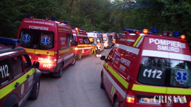 Inspectoratul pentru Situaţii de Urgenţă „Crişana" al judeţului Bihor a desfăşurat, miercuri seara, un exerciţiu de cooperare pentru limitarea şi înlăturarea urmărilor unui accident rutier cu victime multiple. Conform scenariului pus la cale de organizatori, miercuri, în jurul orei 18.30, prin 112, a fost sesizată producerea unui accident rutier pe drumul judeţean DJ 108H, între localităţile Pestiş şi Pădurea Neagră, în care au fost implicate două autoturisme şi un microbuz. Una dintre maşini s-a răsturnat într-o râpă, microbuzul se afla chiar pe marginea coastei abrupte, iar cel de-al treilea autovehicul a fost proiectat într-un copac situat pe marginea prăpastiei, la acesta din urmă izbucnind un incendiu violent, din cauza scurgerilor de combustibil. Accidentul a fost deosebit de grav, cele trei persoane din cele două autoturisme, fiind încarcerate şi toţi ocupanţii microbuzului fiind proiectaţi, în urma impactului, în râpă, la o diferenţă de nivel de aproximativ 15 metri. Bilanţul care a arătat că două persoane sunt decedate şi 15 rănite, unele dintre acestea în stare foarte gravă, a impus activarea de urgenţă a Planului Roşu de Intervenţie. „Pentru salvarea victimelor au fost mobilizaţi 40 de pompieri militari, o autospecială de descarcerare grea, o autospecială de stingere cu modul de descarcerare, o autospecială de descarcerare cu remorca cu punctul medical avansat, un autocamion de intervenţie şi opt ambulanţe SMURD", a precizat lt. Camelia Roşca, purtătorul de cuvânt al ISU "Crişana". Poliţiştii au delimitat accesul în zonă şi au identificat victimele, iar jandarmii au asigurat ordinea şi siguranţa publică. Cele opt echipaje SMURD şi cinci echipaje ale Serviciului de Ambulanţă au triat răniţii, le-au acordat îngrijiri medicale de urgenţă şi i-au transportat la spital. Totul a fost un exerciţiu prin care s-a urmărit modul în care autorităţile responsabile pot gestiona o astfel de situaţie reală, concluzia finală arătând faptul că situaţiile de urgenţă ce ar putea genera declanşarea Planului Roşu de Intervenţie în judeţul Bihor, vor putea fi gestionate la parametri optimi de către instituţiile care au competenţă de acţiune în domeniu.