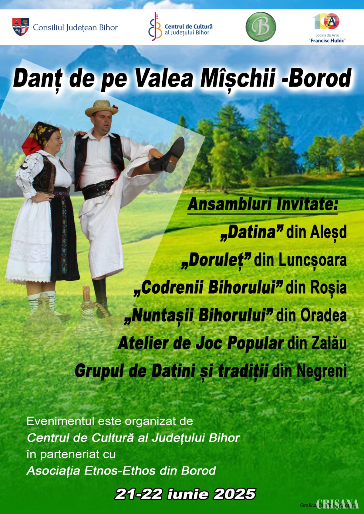 „Publicul este invitat să participe la această celebrare a folclorului local, în care portul popular, dansul și muzica tradițională se întâlnesc într-un tablou viu al identității culturale bihorene. Participarea în costum tradițional este obligatorie, fiind o condiție esențială pentru respectarea autenticității evenimentului. Acompaniamentul va fi asigurat de tarafuri tradiționale din Bihor, punând în valoare instrumente emblematice precum vioara cu goarnă și doba (toba), într-o formulă muzicală specifică zonei. Evenimentul va pune în valoare și gastronomia autentică, cu bucate gătite de localnici din ingrediente locale, după rețete transmise din generație în generație. Tot în cadrul acestei inițiative, în 21 iunie, cu o zi înainte de evenimentul public, pe aceeași tema se va filma un documentar care va cuprinde toate aceste tradiții, un proiect unic în țară care își propune conservarea și revitalizarea tradițiilor din această zona a Bihorului”, menţionează Centrul de Cultură al Județului Bihor.