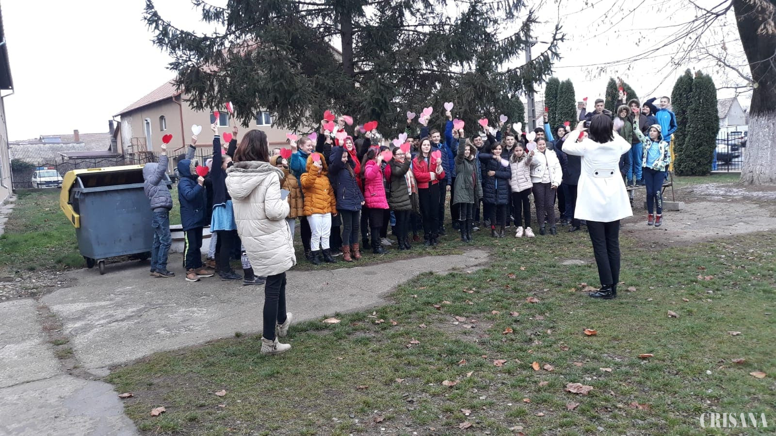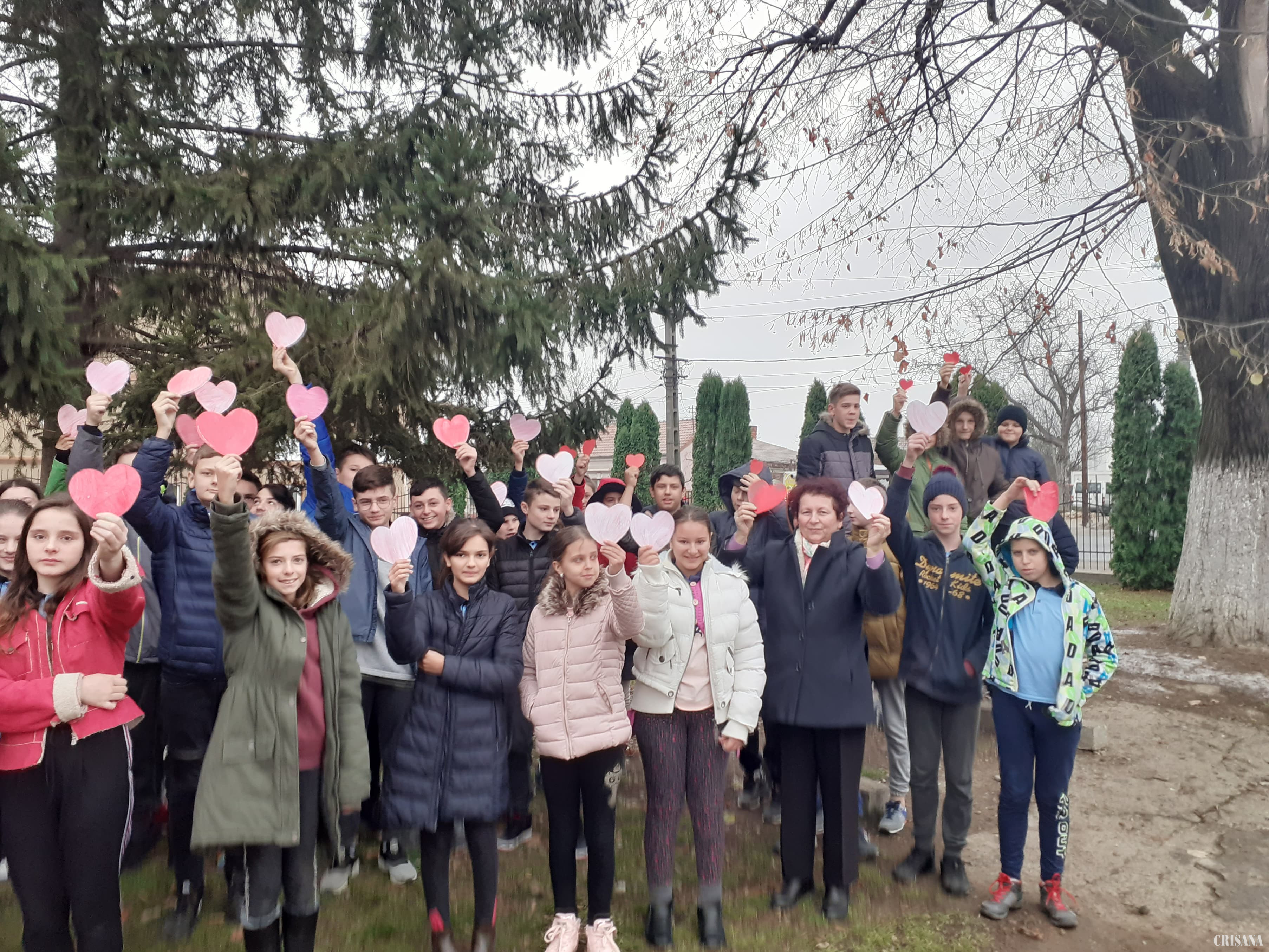 Copiii au ieșit alături de colegii lor, cu inimioarele confecționate, nu din compătimire, ci în semn de solidaritate, sprijin, acceptare, dragoste și respect, așa cum fac în fiecare zi la școală.