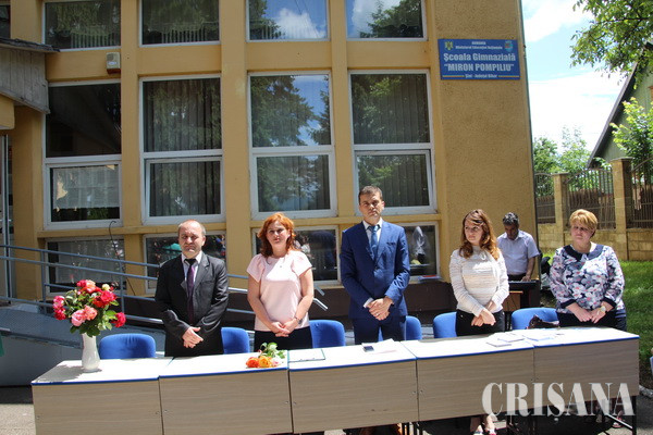 Curtea din incinta Şcolii Gimnaziale „Miron Pompiliu” Ştei a fost arhiplină, miercuri, 15 iunie, de elevi, profesori, bunici, părinţi, rude, dar şi prieteni care au dorit să fie alături de cei 77 de absolvenţi din clasa a opta din cele patru clase terminale, pentru care clinchetul clopoţelului a sunat pentru ultima oară în această unitate de învăţământ.