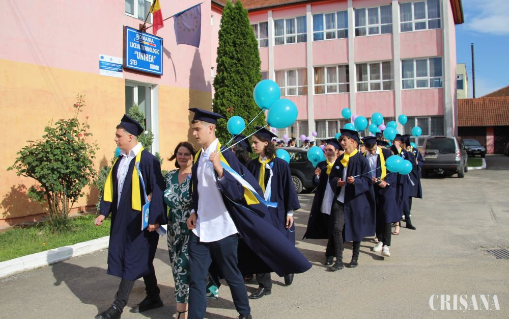 La Liceul Tehnologic „Unirea” Ștei - a cărui conducere este compusă din prof. ing. Adrian Gruie și prof. Cristian Vieriu, director, respectiv director adjunct - clopoțelul a sunat ultima oară pentru cei 61 de absolvenți din clasa a XII-a care vor confirma pe piața muncii că „meseria este brățara de aur”.
