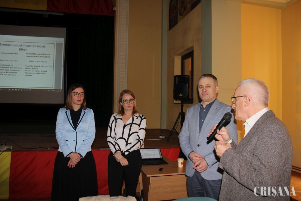Sala mare de festivități din incinta Casei de Cultură „Miron Pompiliu” Ștei a fost, joi, 6 aprilie, gazda acestei întâlniri - facilitată de autoritățile locale, reprezentate de ing. Iulian Balaj și ec. Marius Cioară, primarul, respectiv viceprimarul orașului Ștei - care a stârnit un real interes al potențialilor investitori, în viitorul apropiat, în parcul industrial Ștei care are o suprafață de 13,5 ha. La această întâlnire, expunerea de finanțare a fost prezentată de o echipă compusă din reprezentanți ai instituțiilor partenere în implementarea parcurilor de specializare științifică - Alina Silaghi, directorul Agenției de Dezvoltare Locală Oradea (ADLO), Anca Roman și Cristi Gavriloaia, reprezentanții Agenției de Dezvoltare Regională Nord-Vest (ADR-NV) - iar Consiliul Județean Bihor a fost reprezentat de vicepreședintele Mircea Mălan, care a prezentat contextul general al sprijinului pentru ecosistemul antreprenorial regional.