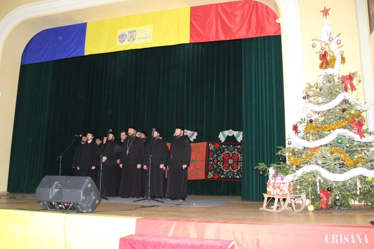 Organizat de Consiliul Județean Bihor, Centrul de Cultură al Județului Bihor și Primăria Orașului Ștei, spectacolul a avut loc, vineri, 16 decembrie, în sala mare de festivități a Casei de Cultură „Miron Pompiliu” Ștei – pregătită la standarde europene pentru acest eveniment, cei implicați meritând felicitări – în fața unui public deosebit de entuziast, printre care am remarcat prezența vicepreședintelui CJ Bihor, Mircea Mălan, a consilierului județean Dorin Traian Boca, a inspectorului general al IȘJ Bihor, Horea Abrudan, a directorului medical al Spitalului Orășenesc Ștei, dr. Sorin Luigi Vesa, precum și directori de la instituțiile de învățământ din urbea de sub Apuseni, dar și mulți oameni de afaceri. Moderatorul acestui adevărat spectacol, Irina Mihoc, s-a ridicat la înălțimea evenimentului, iar primii care au dat „tonul” colindelor au fost elevii și cadrele didactice de la Școala Gimnazială „Miron Pompiliu” Ștei. Astfel, corul elevilor claselor primare a fost coordonat de prof. Adriana Fericean , în timp ce corul elevilor claselor gimnaziale a fost coordonat de prof. Natalia Bunduruș și Cornel Tomuțiu. Corul profesorilor, coordonat de prof. Natalia Bunduruș, a capacitat auditoriul prin costumele populare tradiționale purtate, dar și prin cele două colinzi. După ce a salutat publicul spectator, primarul orașului Ștei, ing. Iulian Balaj, a ținut o alocuțiune, cu o temă specifică, cea a colindelor, după care a acordat câte o Diplomă de Merit – pentru rezultatele excelente și buna colaborare cu Primăria Ștei, în păstrarea și promovarea obiceiurilor și tradițiilor românești – Consiliului Județean Bihor, Centrului de Cultură al Județului Bihor, Inspectoratului Școlar Județean Bihor, dar și moderatorului Irina Mihoc, precum și o Diplomă de Excelență – în semn de prețuire și apreciere pentru devotamentul și atașamentul pentru valorile ortodoxiei și ale neamului românesc – Arhimandritului Mihail Tărău, Starețul Mănăstirii Izbuc. Ceata Colindătorilor din Cărpinet, coordonată de preotul Sebastian Florin Moruț, a avut o prestație deosebită, ca și Ceata de colindătoare din Parohia Lunca, în care vocea profesoarei Carmen Ifrim Săsărman a fascinat, pur și simplu. Munca, dar și pasiunea, preotului Călin Daniel Pădurean, a primit răsplata cuvenită, deoarece Ceata de colindători din Șuștiu, pe care o coordonează, a dat dovadă de un adevărat profesionalism, în ciuda vârstei fragede care caracterizează colindătorii din Șuștiu. Tradițiile românești din perioada ce precede praznicul Nașterii Domnului au fost puse în lumină de Obștea Mănăstirii Izbuc, coordonator Arhimandritul Mihail Tărău, Starețul Mănăstirii Izbuc, iar colinzile au intrat în inimile tuturor credincioșilor din sală, care au trăit clipe de adevărată înălțare spirituală împreună cu cei de pe scenă.