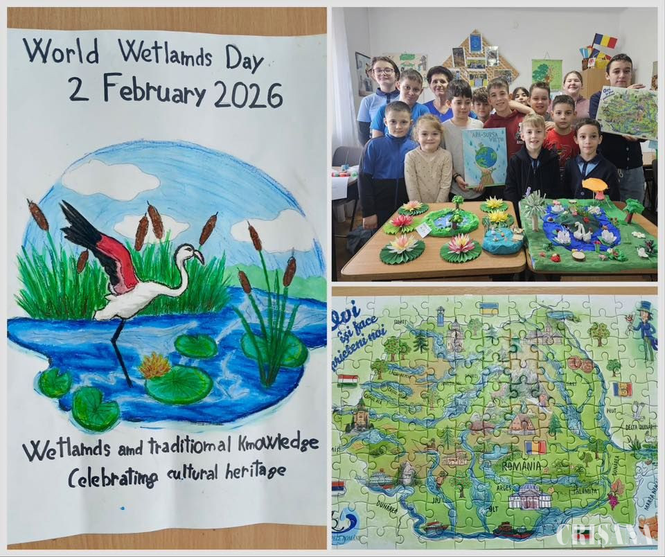 Coordonați de prof. ing. Florica Gabor, micii ecologiști au realizat eseuri, colaje, machete și desene cu ocazia Zilei Mondiale a Zonelor Umede. Tema ediției din acest an evidențiază legătura dintre zonele umede și cunoașterea tradițională a comunităților locale, esențială pentru utilizarea durabilă și protejarea acestora.